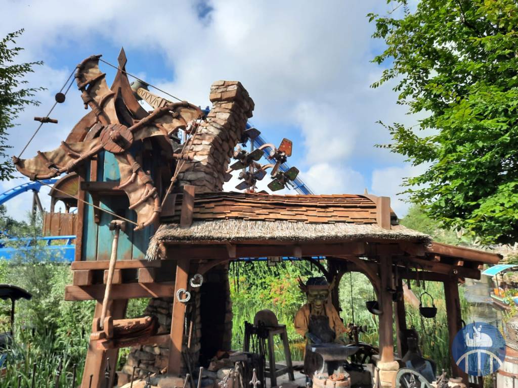 Nous retrouverons Blacksmiths’ Workshop (un fabricant de boucliers, épées, casques et chaudrons), Creatures Cottage (où les créatures de la zone ont élu domicile), Books & Spells House (une bibliothèque construite autour de dolmens) et la Frost Ice Statue (rappelant l’occupation de la sorcière de glace Morgana et commémorant sa bataille avec Merlin). Une panoplie d’éléments interactifs et effets spéciaux seront à découvrir et à activer par les visiteurs pour une immersion complète.