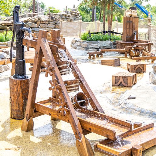 L’aire de jeux aquatique est située en face du restaurant The Flaming Feather, sur le bord du lac. Maintenant que Morgana, la sorcière, est enfermée, le dragon Sparky peut faire la fête sur ce quai où sont livrées les victuailles du restaurant via les bateaux du Merlin’s Quest. Les enfants profitent d’une panoplie d’éléments interactifs, dont des tonneaux, un puits et une rivière dont ils peuvent contrôler la puissance. Ils peuvent même interagir avec les bateaux qui passent le long du quai !