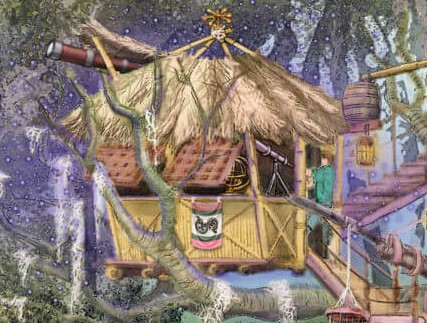 Tarzan’s Treehouse a fermé ses portes en Septembre 2021 afin de subir cette refonte et d’adopter une toute nouvelle histoire qui est donc partiellement inspirée du film Disney Les Robinsons des mers du Sud (Swiss Family Treehouse). C’est en effet une autre famille que celle présentée dans le long-métrage qui s’est installée dans la jungle, mais les lieux rappellent la cabane originale avec, notamment, la roue à eau bien reconnaissable. Chaque membre de la nouvelle famille a eu droit à sa pièce à thème décorée avec des objets trouvés et autres ressources naturelles transformées : la pièce du père évoque l’art, celle de la mère la musique, celle des fils jumeaux la nature et, enfin, celle de la fille l’astronomie. Notons que pour qu’un maximum de visiteurs puisse profiter de l’expérience, des pièces ont été aménagées en plain-pied, ce qui permettra aux personnes à mobilité réduite d’y accéder : au niveau du sol, se situent ainsi la cuisine, la salle à manger (avec la présence de l’autruche Jane !) et la pièce du père que nous venons d’évoquer.