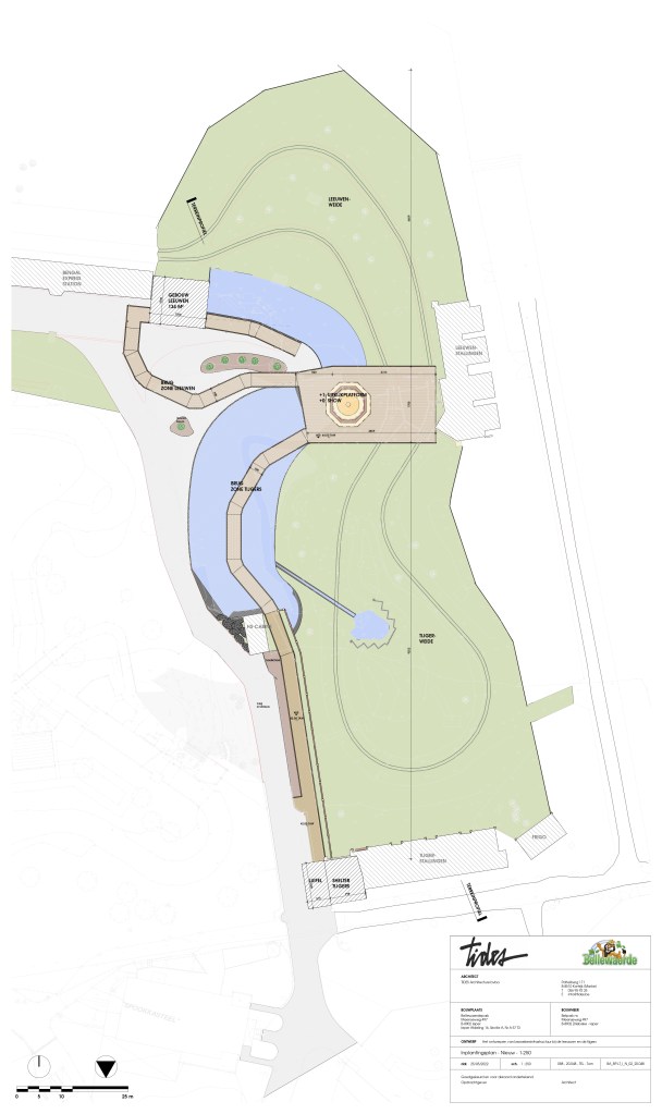 Comme pour l’enclos des girafes, les points de vue du visiteur sur les animaux seront améliorés : ainsi, une plateforme d’observation reliée par une passerelle et un escalier a été construite entre les deux enclos et une zone d’entrainement ainsi qu’une tribune seront aménagées sous cette plateforme. L’actuel point de vue sur les lions (aménagé en 2012) a quant à lui été détruit et le thème India sera à terme renforcé.