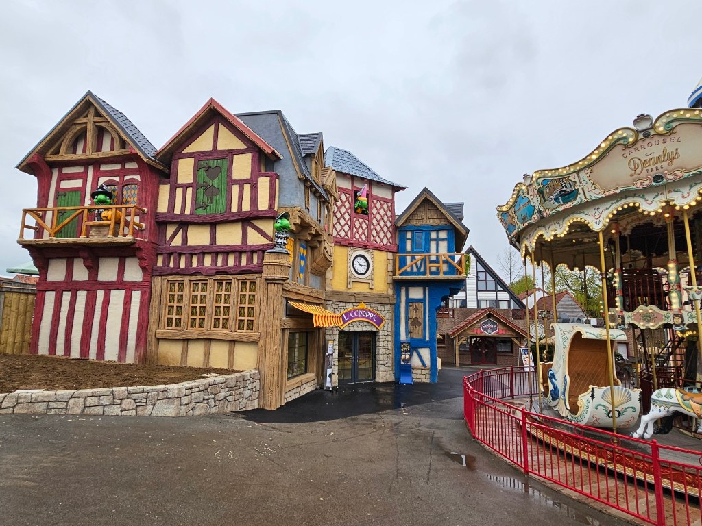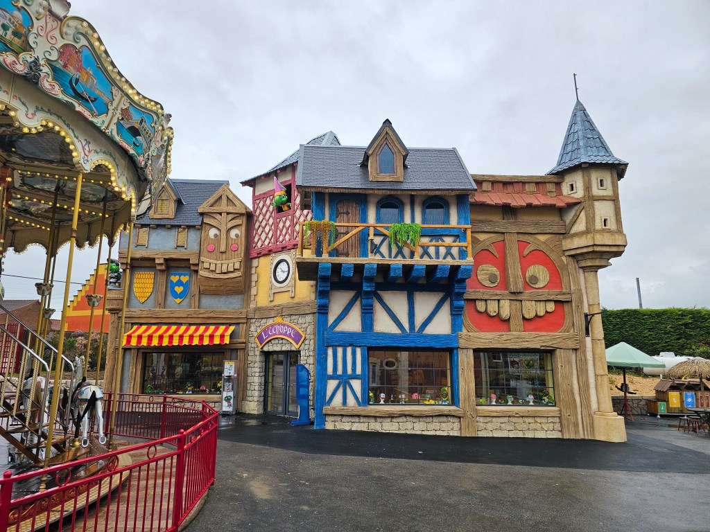 À l’ouverture de la saison, le 20 Avril 2024, nous avons pu découvrir les différents aménagements apportés au parc. La boutique du parc, L’Échoppe, a tout d’abord fait peau neuve : les façades du bâtiment ont en effet été habillées et revêtent désormais un caractère médiéval. Petit avant-après…