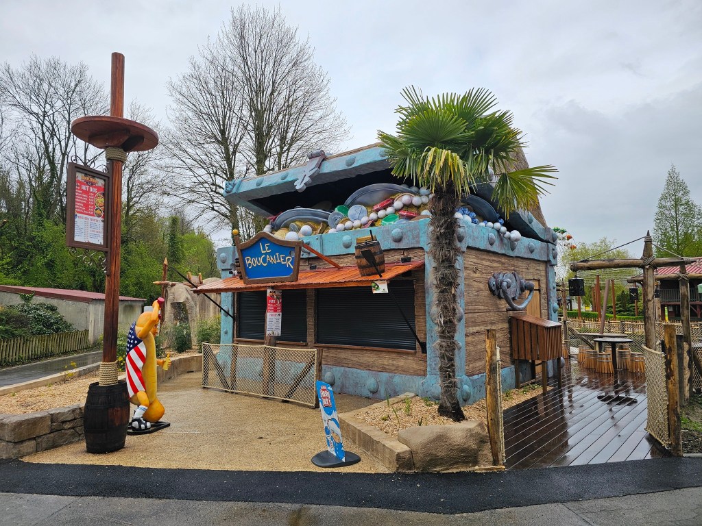 Le parc a ensuite rethématisé un stand de hot-dogs, La Fringale, le faisant ainsi coller au thème de la zone pirates initiée avec P’tits Pirates en 2022 : Le Boucanier. Encore une fois, on vous propose un avant-après…
