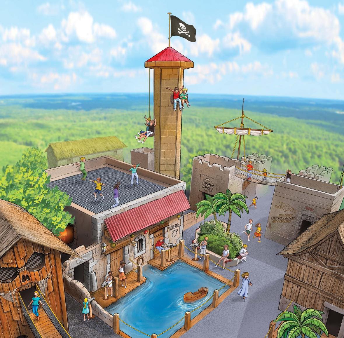 Depuis le 22 Juin 2024, ce sont donc deux attractions qui viennent compléter cette partie du parc : La Tour des Moussaillons, une Tower du constructeur SunKid, et Le Repère des Pirates – Splash Aventure, une zone aqua-ludique. Le tout sublimement thématisé.