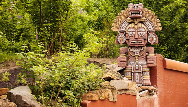 En outre, de nouvelles statues géantes de dieux incas cracheurs d’eau veilleront à ce que le visiteur ressorte complètement trempé de l’aventure ! Celles-ci sont notamment placées au tout début du parcours. Et ce ne sont pas les seuls éléments qui rendront l’attraction encore plus humide : brume, rideau d’eau, flèches d’eau et aqueduc qui fuit parsèment tout le parcours de cette nouvelle version de Piraña !