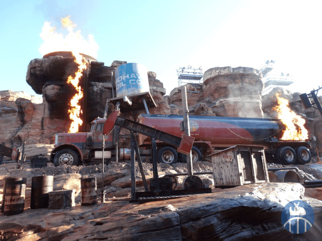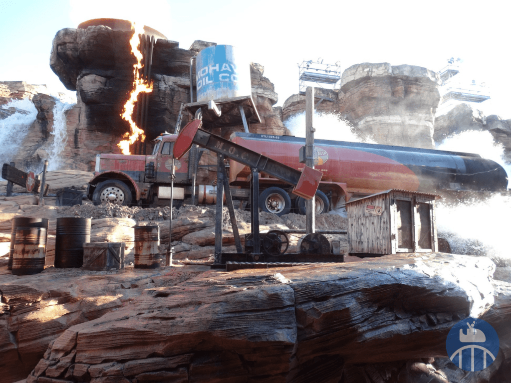 Arrivait ensuite l’élément le plus intéressant (et qui a d’ailleurs été conservé pour Cars ROAD TRIP) : le Catastrophe Canyon ! Parmi les effets spéciaux spectaculaires de l’énorme scène, les visiteurs pouvaient vivre une simulation de tremblement de terre, l’explosion d’une citerne et d’un camion ainsi qu’un déluge aquatique de 265.000 litres d’eau !