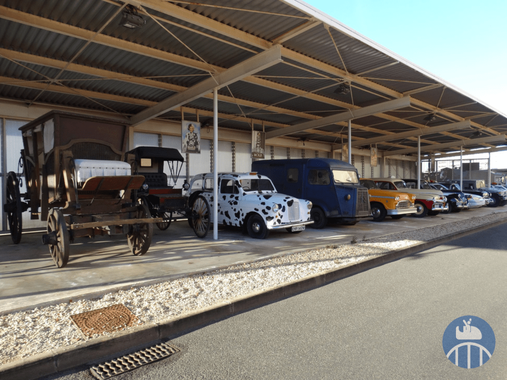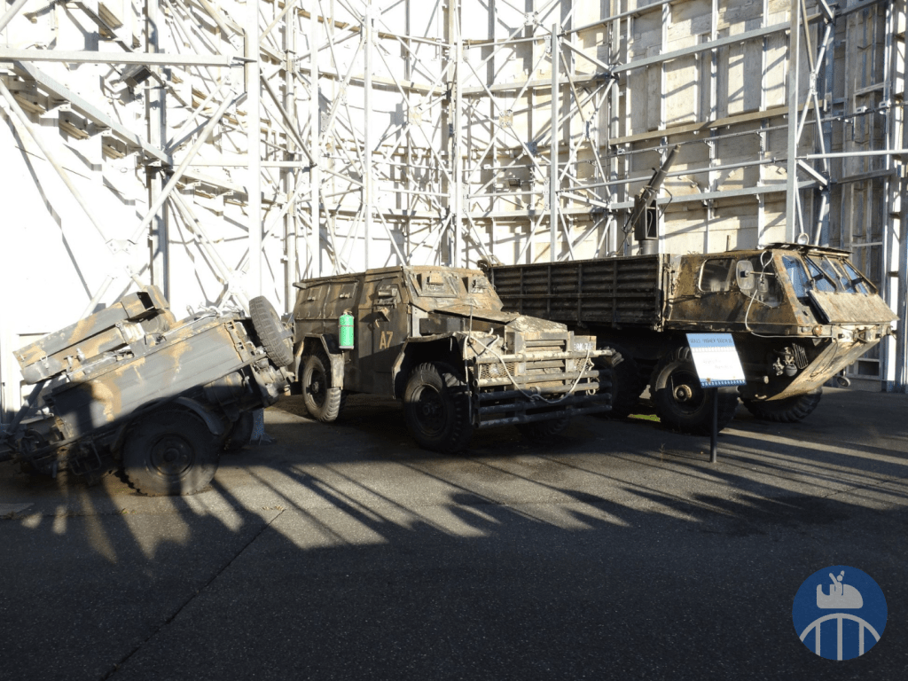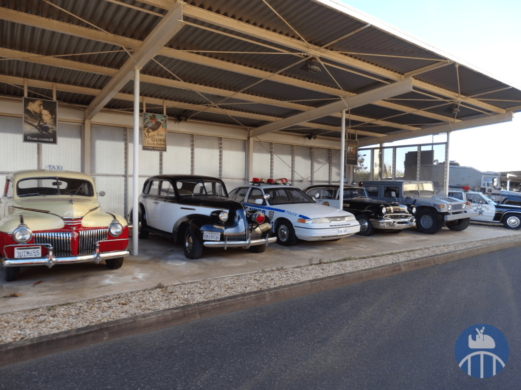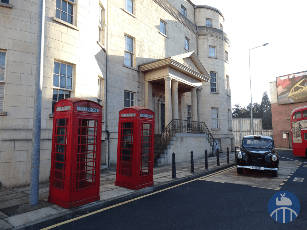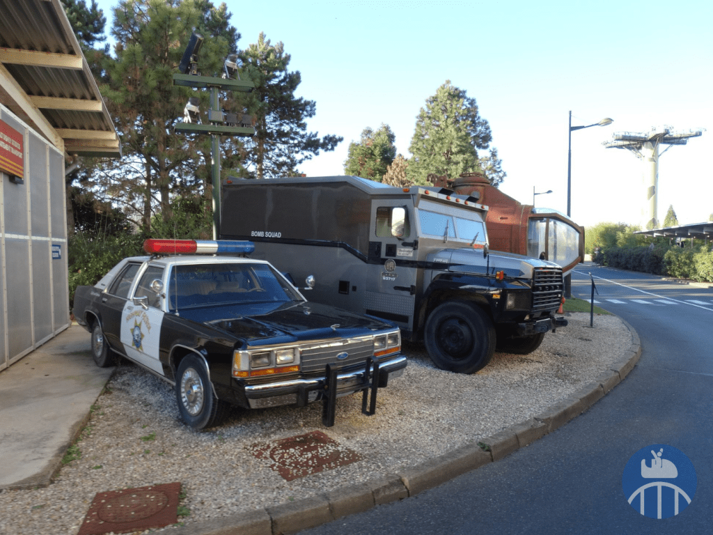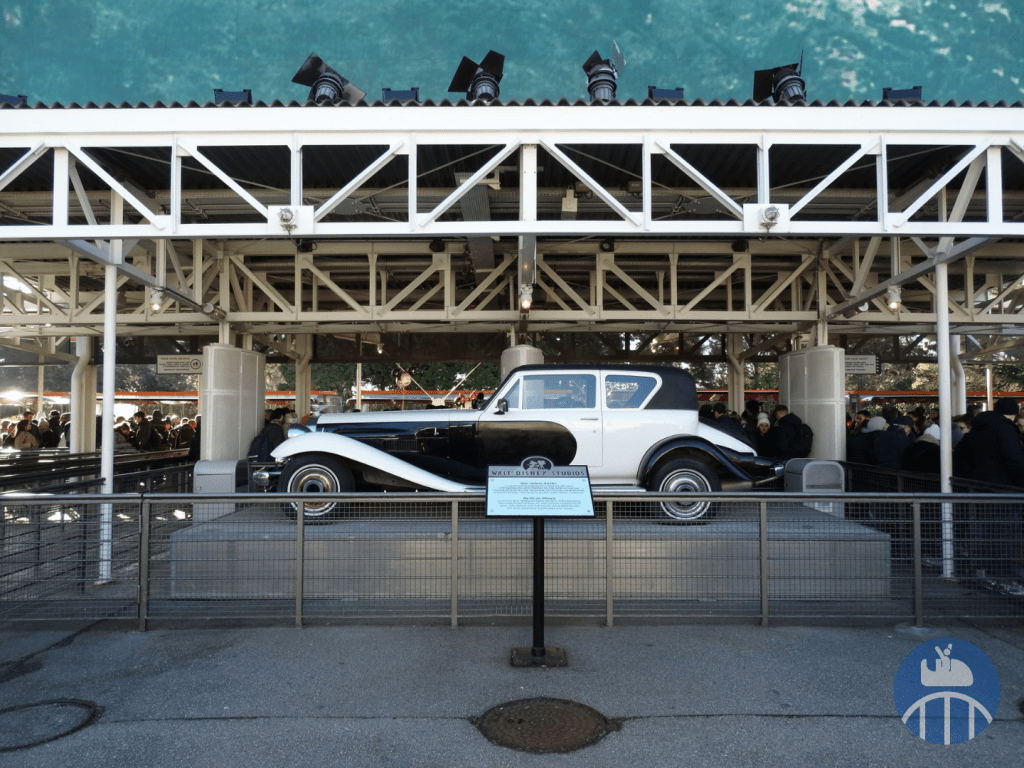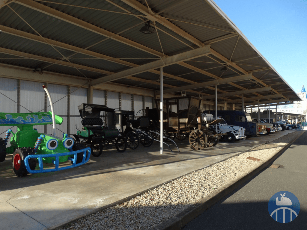 Après ce point d’orgue de la visite, il fallait faire demi-tour, repasser par la station d’embarquement pour poursuivre de l’autre côté de celle-ci. On pouvait alors voir une belle collection de voitures de films. Profitons aussi de l’occasion pour souligner la présence de la célèbre Panther De Ville de Cruella d’Enfer dans la file d’attente du Studio Tram Tour.
