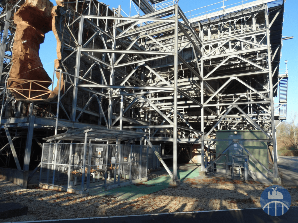 Entre ces reliquats de décors, le tram faisait un passage devant l’évocation du plateau représentant Waterfall City de Dinotopia.