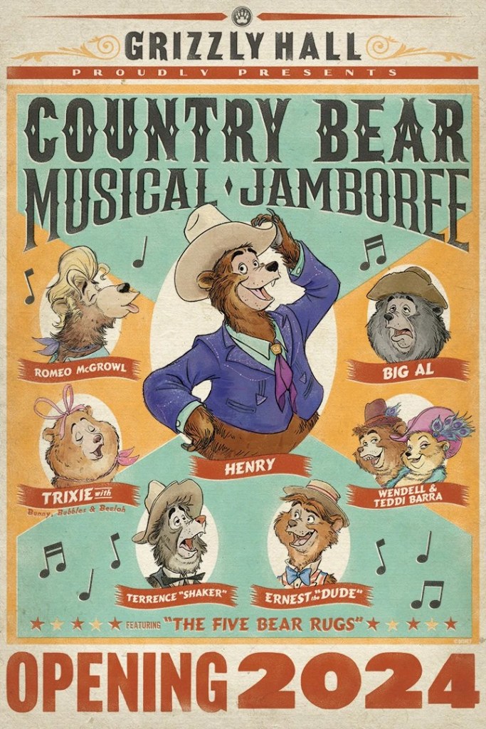 La version originale de Country Bear Jamboree a disparu au Magic Kingdom au profit d’un spectacle incluant des musiques des studios, très probablement pour toucher un nouveau public préférant les musiques Disney aux musiques country sans rapport avec les longs-métrages d’animation. Outre ce spectacle, Magic Kingdom a également ouvert la nouvelle mouture de Splash Mountain (Tiana’s Bayou Adventure) en 2024 et a rethématisé deux boutiques, Tiana’s Bayou General & Critter Co-op.