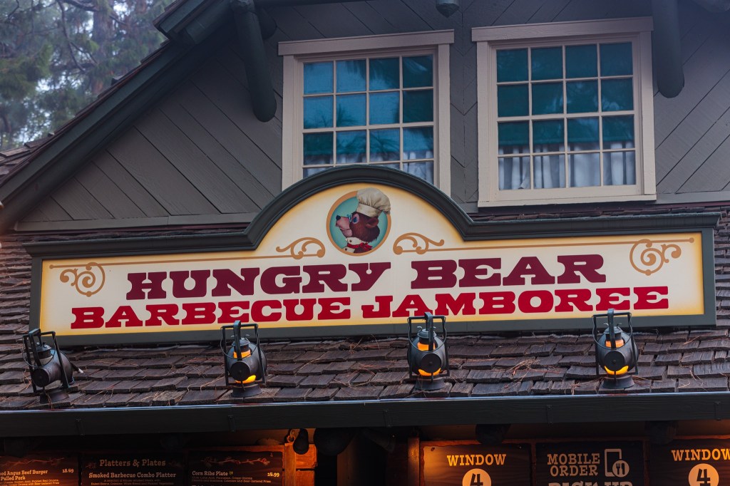 Hungry Bear Barbecue Jamboree est la réimagination de l’ancien restaurant Hungry Bear inspiré de l’attraction Country Bear Jamboree. Le menu est composé de plats de barbecue régionaux que les Country Bears ont découverts lors de leur tournée. L’établissement avait fermé ses portes le 8 Juillet pour rouvrir transformé le 25 Octobre 2024.