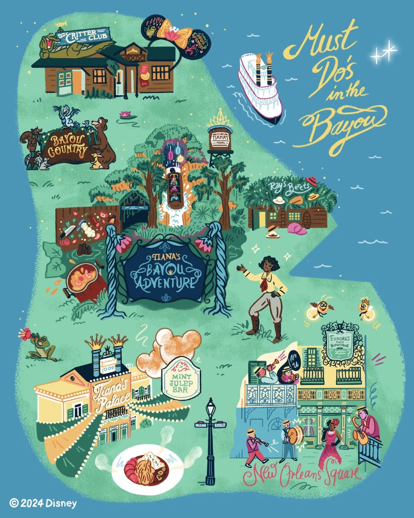 Après l’ouverture de Eudora’s Chic Boutique Featuring Tiana’s Gourmet Secrets en 2022 et de Tiana’s Palace en 2023 et alors que Tiana’s Bayou Adventure a ouvert le 15 Novembre 2024, c’est tout le land entourant l’attraction rethématisée qui a pris le thème du film d’animation La Princesse et la Grenouille. En effet, Critter Country est devenu Bayou Country et trois points de vente ont changé de nom dans cette zone bien connue du Disneyland Park d’Anaheim.