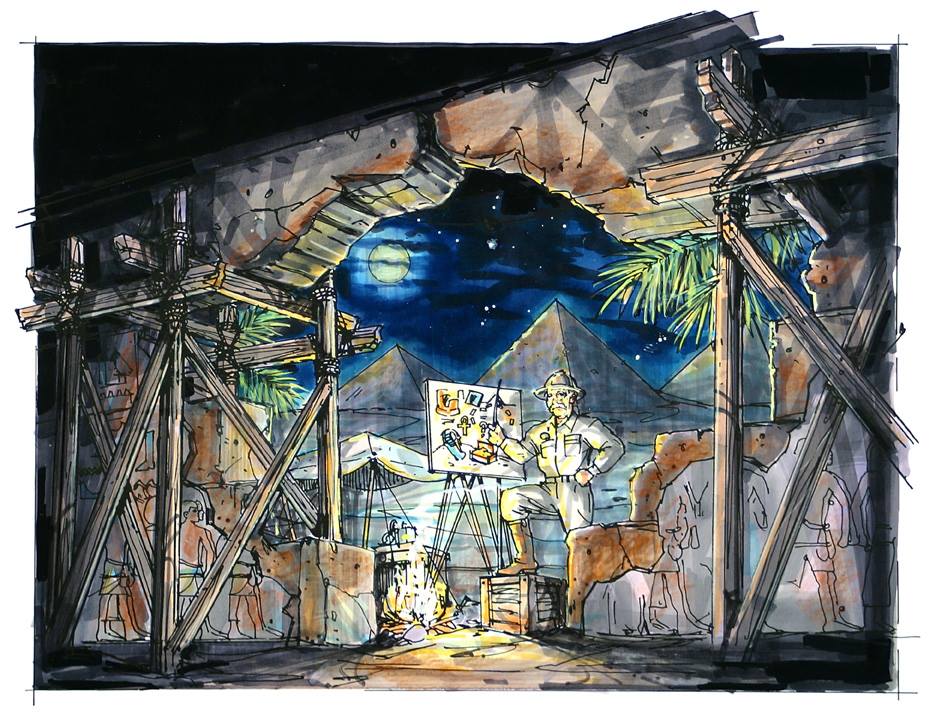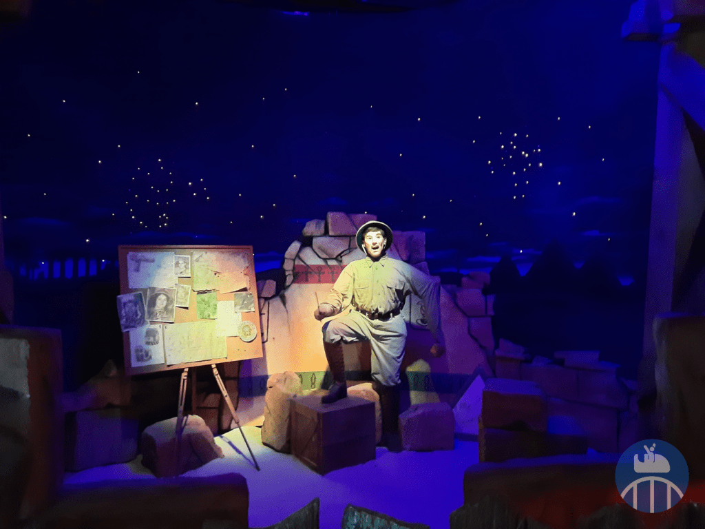 Fun Fact : Pour la scène de la transformation de l’archéologue en squelette, c’est la technique du Pepper’s ghost qui a été utilisée. Nous vous en parlions déjà dans un précédent dossier sur Los Piratas, il s’agit d’une illusion qui utilise une plaque semi-réfléchissante et des techniques d’éclairage permettant de faire croire que des objets apparaissent, disparaissent ou deviennent transparents, ou encore qu’un objet se transforme en un autre, par réflexion d’objets situés dans un endroit caché du spectateur sur ladite plaque placée devant le décor observé.