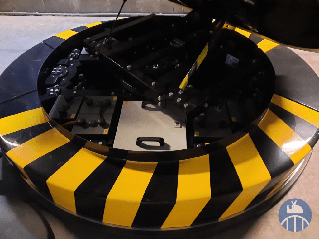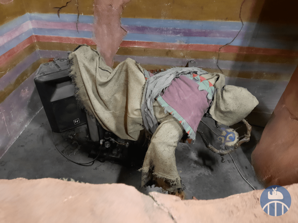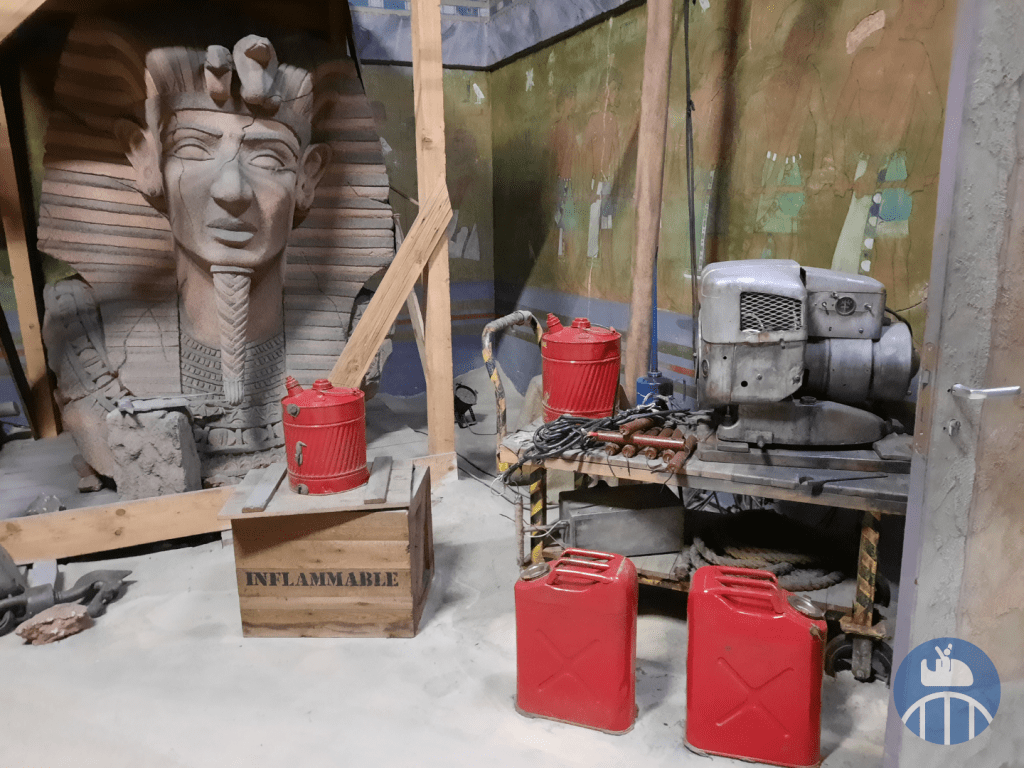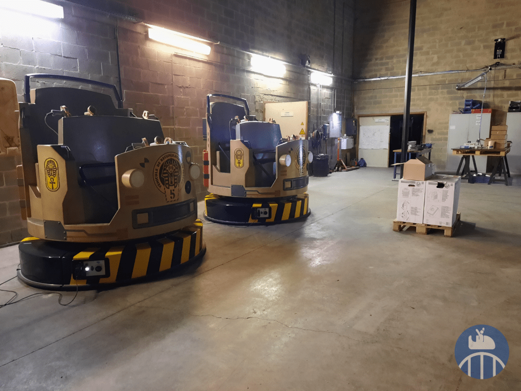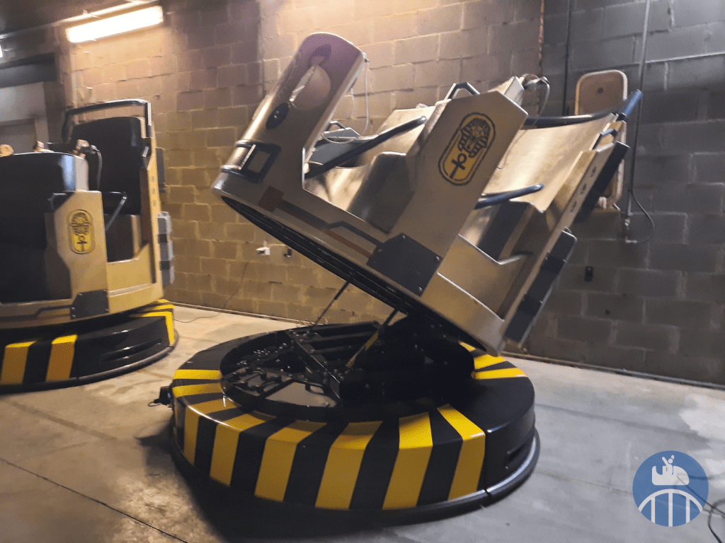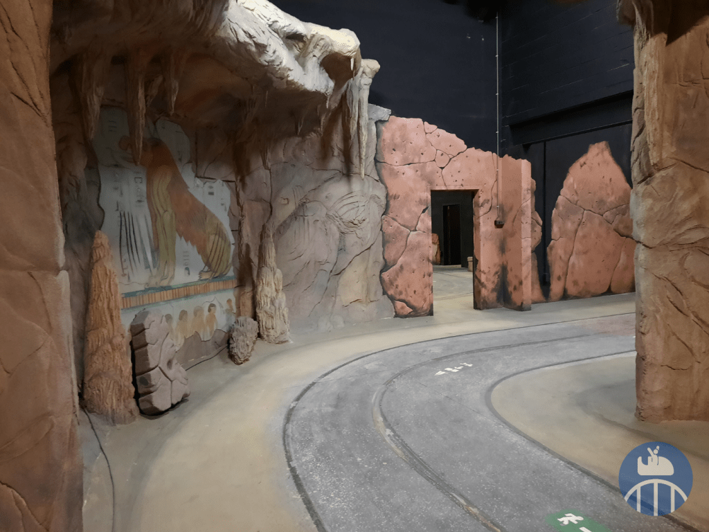 Pour terminer notre découverte de Challenge of Tutankhamon, pénétrons à présent dans une partie du bâtiment qui n’est pas accessible du public : le garage ! On en profitera pour souligner que, durant l’intersaison 2023-2024, ce n’est pas moins d’un million d’euros qui ont été investis pour une mise à jour technique de l’attraction et, plus particulièrement, des véhicules.