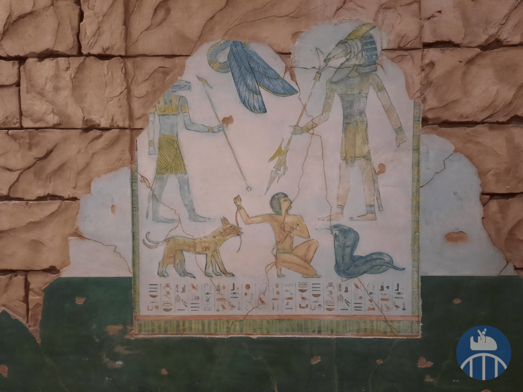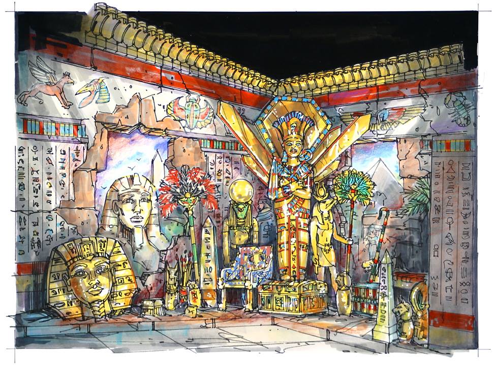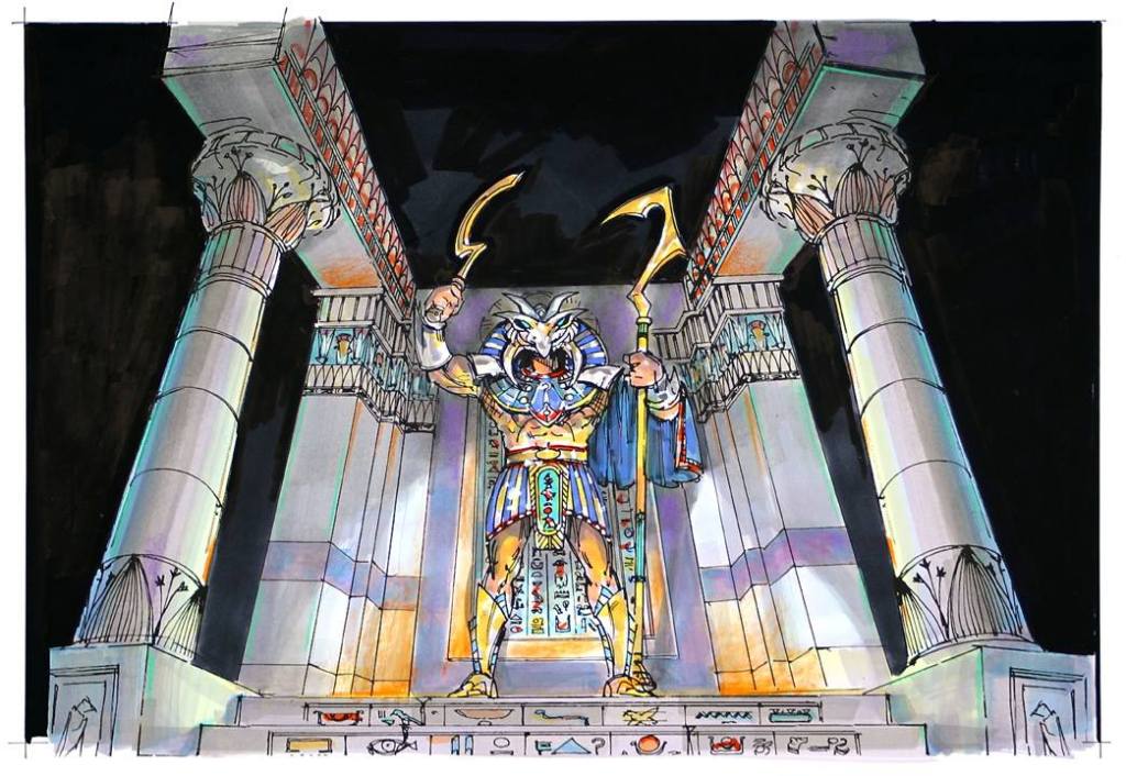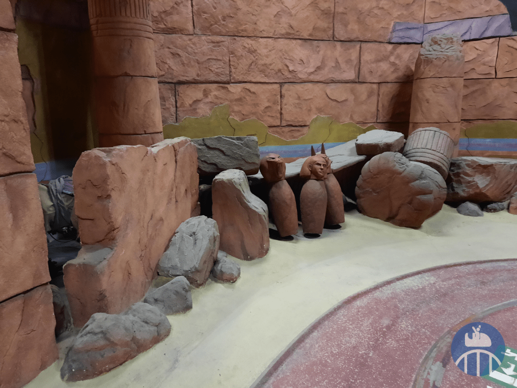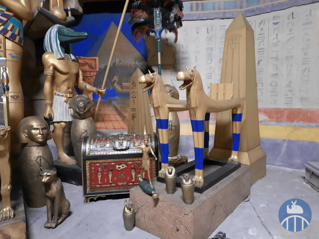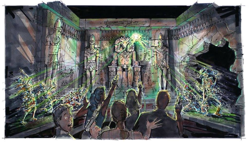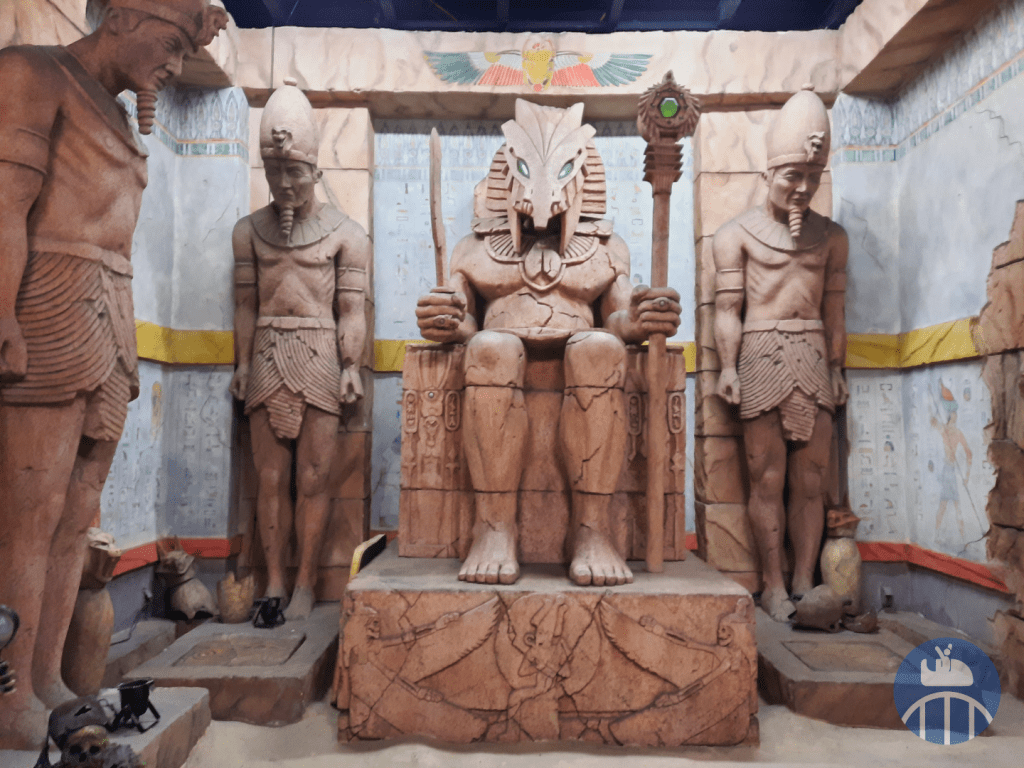 Après l’embarquement (chaque véhicule se compose de deux rangées de trois places), les visiteurs commenceront leurs incroyables aventures en passant devant des bustes de cobras, traverseront le chantier archéologique en cours, verront se transformer en squelette une archéologue, puis seront toisés par une statue colossale de Seth.