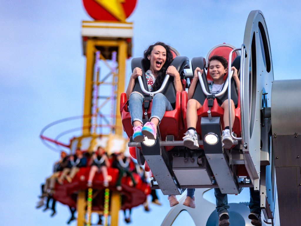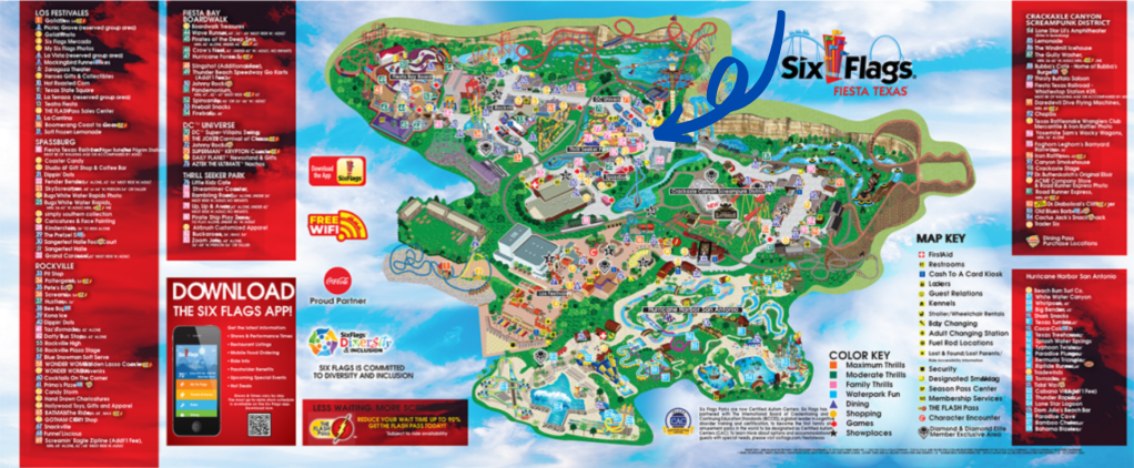Les super-héros DC Comics envahissent littéralement Six Flags Fiesta Texas ! Même s’il reste des incohérences dans la zone DC Universe (certaines attractions éloignées ou d’autres n’ayant pas le thème DC, comme Bucking Broncos réhabilité en 2023 sur un thème western et situé en plein cœur de la future extension), soulignons le fait que le parc investisse encore cette année dans trois nouveautés après deux coasters, Dr. Diabolical’s Cliffhanger et KID FLASH Cosmic Coaster !