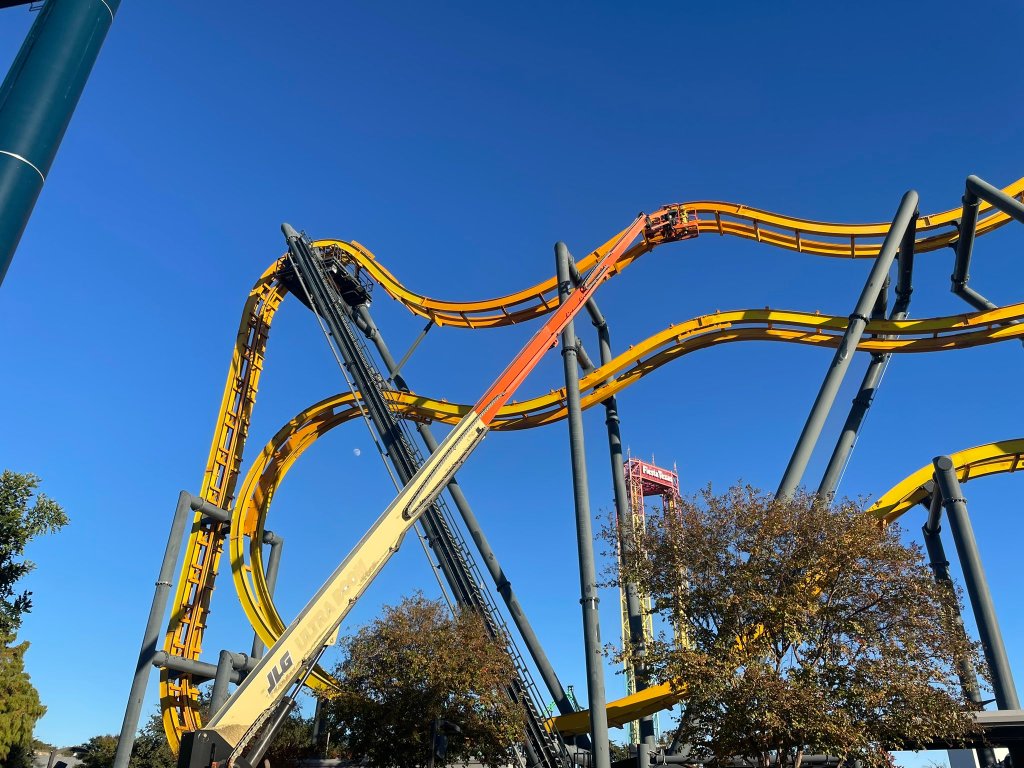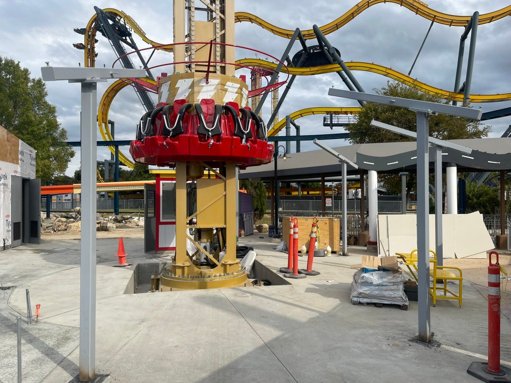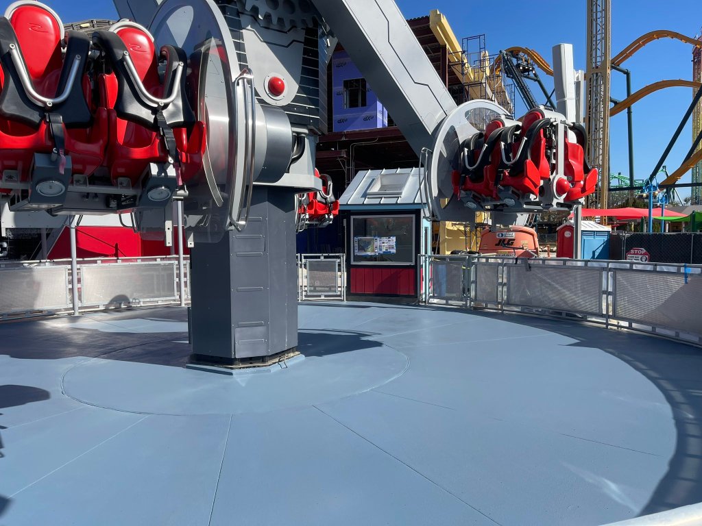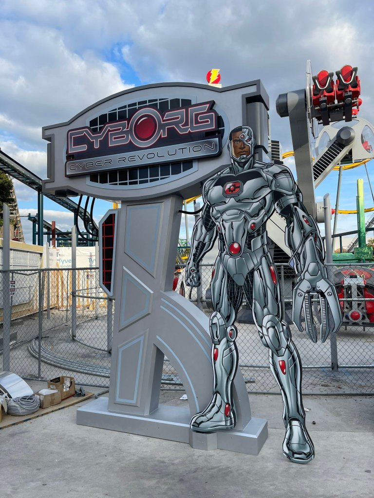 Cette extension de DC Universe s’est donc faite de deux façons : la rethématisation de certaines attractions existantes et la construction de nouvelles. Et c’est dans la toute jeune zone Thrill Seeker Park (datant de 2020 seulement…) que se sont concentrés les chantiers.