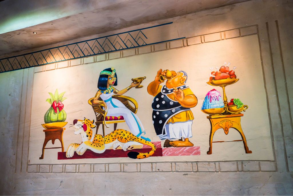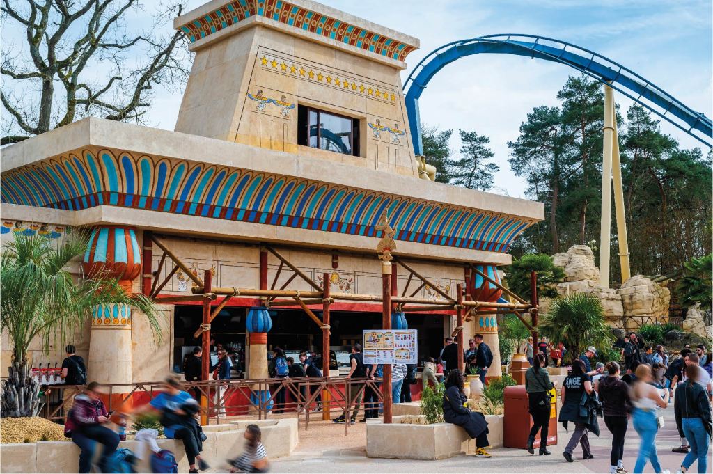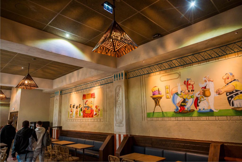 En plus d’une nouvelle montagne russe, Cétautomatix, le Parc Astérix a également ouvert un nouveau restaurant sur le thème de l’Égypte en 2025, Les Fastes du Nil, agrandissant cette zone thématique. L’ancier goûteur de Cléopâtre vous convie à un festin aux saveurs égyptiennes !