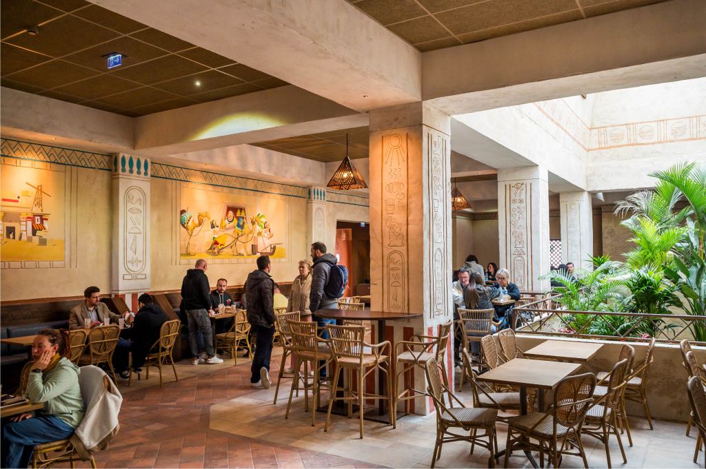 Les Fastes du Nil immerge les visiteurs en Égypte et propose différentes variétés de burgers et wraps façon égyptienne ainsi que des desserts aux goûts fleur d’oranger et pistache. L’histoire raconte que l’ancien goûteur de Cléopâtre est à l’origine de ce restaurant car il souhaitait partager son savoir-faire avec son peuple.