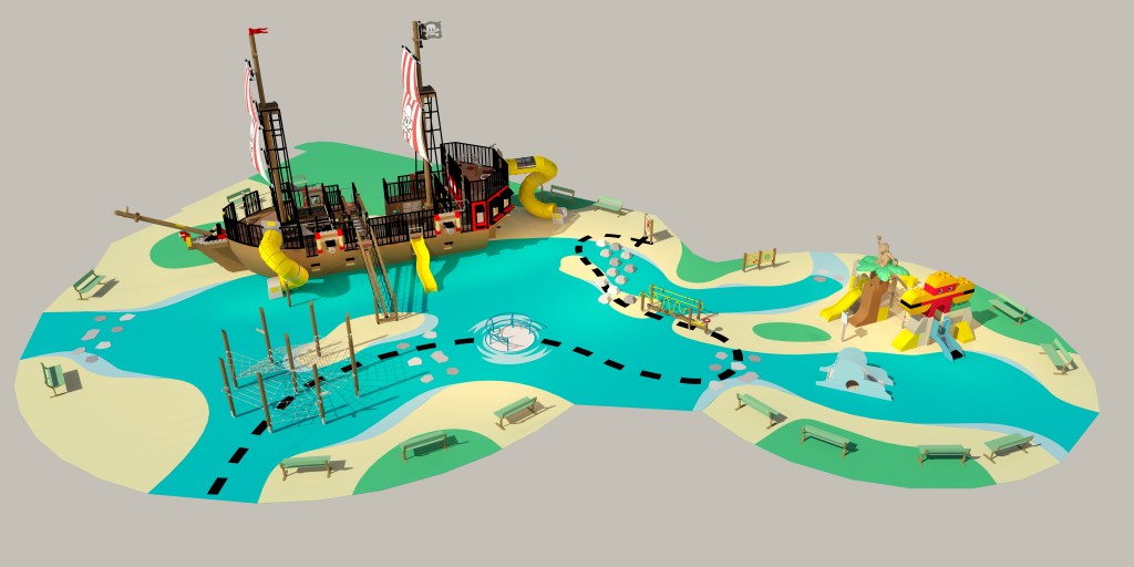 Dans Pirate Land, une aire de jeux de 900 m² est sortie de terre avec en point d’orgue un bateau pirate de 22 mètres de long et 11.5 mètres de haut avec 3 étages accessibles, des canons, des toboggans et des lieux de grimpes. Elle est adaptée aux chaises roulantes et une zone est réservée aux plus petits (jusqu’à 3 ans), le King Crab Island.
