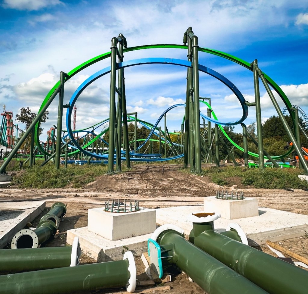 C’est donc deux montagnes russes de ce type qui sont arrivées en 2025 à Walibi Holland, l’une étant sans inversion et destinée aux familles (parcours bleu) et l’autre, plus intense avec six inversions, aux amateurs de sensations (parcours vert). Ce double coaster en duel n’est pas moins que le plus haut, le plus rapide et le plus raide d’Europe avec une vitesse maximale de 82 km/h et une hauteur de 30 mètres. À noter également que le parcours intense possède le record d’inversions sur un Single Rail Coaster avec notamment une inversion de type Top Gun.