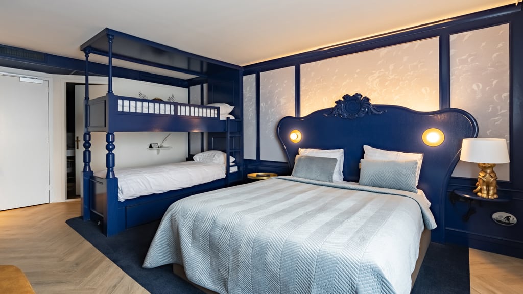 Le Efteling Hotel a ouvert ses portes en 1992. De nos jours, il ne compte pas moins de 20 suites thématiques enchanteresses, 100 chambres confort luxueuses et 4 suites junior spacieuses. Dans ce château suspendu dans les airs, tout est fait pour que les contes de fées et les histoires d’Efteling prennent vie : ainsi, le Petit Chaperon Rouge vient-il saluer les résidents au petit-déjeuner royal et Pardoes, la mascotte du parc, rencontre-t-elle les petits et les grands dans le hall de l’établissement. Précisons qu’une nuitée à l’hôtel comprend toujours un accès illimité au parc où vous pouvez d’ailleurs vous rendre à pied en quelques minutes (le complexe se situant juste derrière l’attraction Vogel Rok et le restaurant Panorama qui est d’ailleurs devenu Kashba en 2023) !