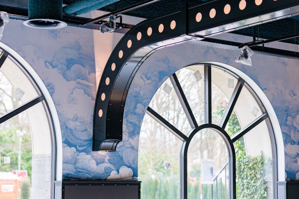 La troisième phase des travaux, qui a eu lieu au début de l’année 2025, s’est concentrée sur l’intérieur du rez-de-chaussée de l’hôtel, composé de la réception, d’un bar, d’un restaurant et d’une boutique souvenirs (tout ceci étant accessible aux non-résidents). Pour ce faire, l’établissement a été fermé du 6 Janvier au 17 Avril 2025. Alors que les étages supérieurs représentent le château dans les airs, le rez-de-chaussée est la station de base, la salle des machines à partir de laquelle le château dans les airs est contrôlé. L’entrée principale a été déplacée vers le coin sud-ouest du bâtiment. Au centre de l’espace de restauration se trouve la timonerie du château aérien : une aire de jeux avec des appareils de mesure, des boutons interactifs, des roues, des volants et des radars grâce auxquels les enfants pourront déterminer le parcours du château aérien ! Un nouveau divertissement est aussi proposé avec le navigateur Jules Verreweg : chaque soir, les enfants et lui remplissent ses boules de rêves avec lesquelles ils créent la vapeur de rêve qui monte dans l’hôtel. Enfin, au restaurant Saga, les histoires d’Efteling sont tissées dans les plats.