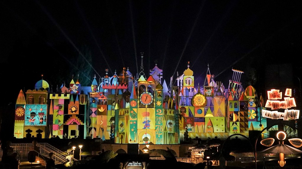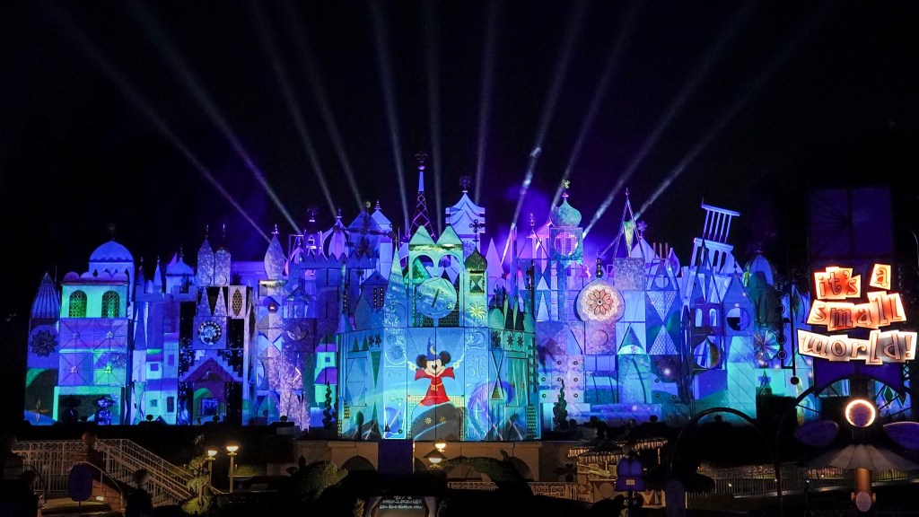 Dans le cadre des festivités du 70e Anniversaire de Disneyland Resort qui ont officiellement été lancées le 16 Mai 2025, un nouveau spectacle de projections, dénommé Tapestry of Happiness, est représenté sur la façade de l’attraction iconique It’s a Small World du Disneyland Park !
