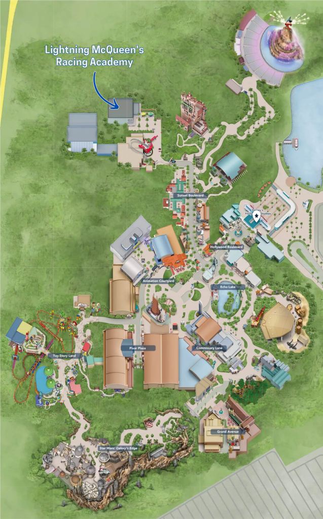 Cet espace a abrité, de 2019 au 7 Octobre 2024, Lightning McQueen’s Racing Academy. Proposé dans le cadre des 30 ans du parc, cette expérience d’une dizaine de minutes plongait les visiteurs dans le monde des courses automobiles de l’univers des films Pixar Cars. En entrant dans le bâtiment, les visiteurs devenaient des rookies et se retrouvaient face à Flash McQueen en personne qui leur montrait comment il s’entraînait pour ses courses via un simulateur (aperçu dans le film Cars 3), composé d’un écran géant circulaire recouvrant toute la salle. En pleine course, ce simulateur se faisait hacker par Chick Hicks qui essayait d’humilier Flash en tentant de le battre à une course virtuelle.