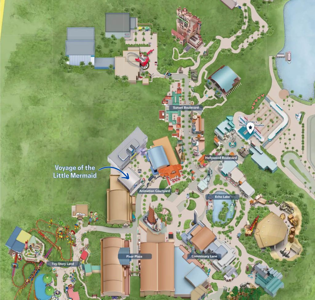 The Little Mermaid – A Musical Adventure remplace le spectacle Voyage of The Little Mermaid, représenté du 7 Janvier 1992 au 15 Mars 2020 dans un théâtre d’Animation Courtyard. Ses représentations se sont arrêtées lors de la fermeture du parc à cause de la pandémie et n’ont jamais repris.
