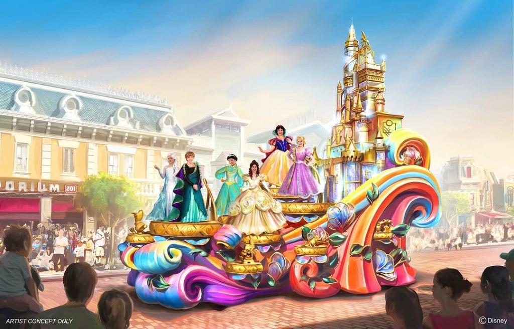 La plus grande parade de l’histoire du parc défilera dans Main Street, U.S.A. à partir de 2025. Friendtastic! verra 11 chars avec de nombreux personnages Disney :