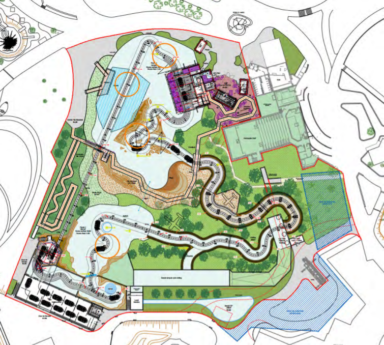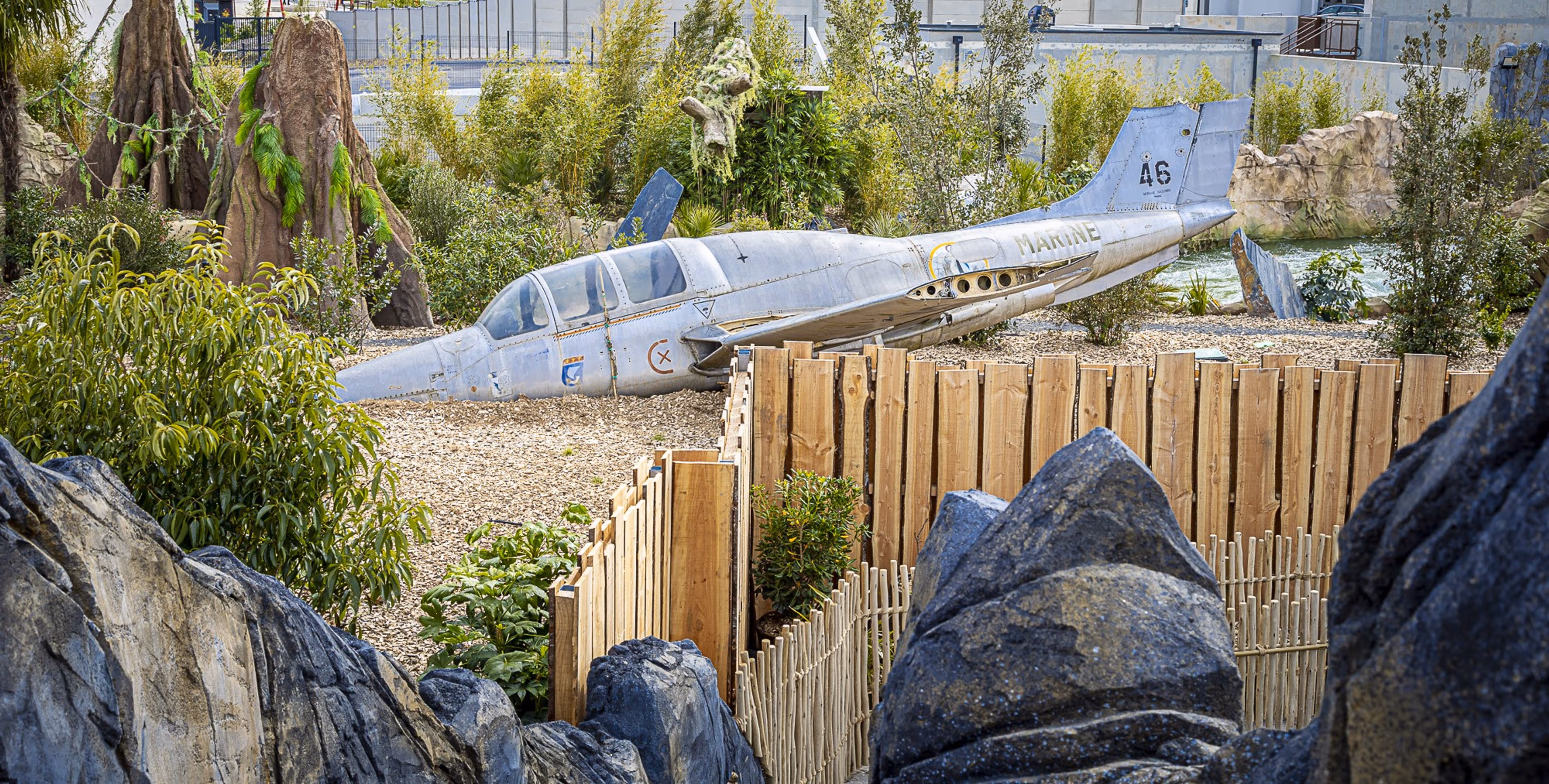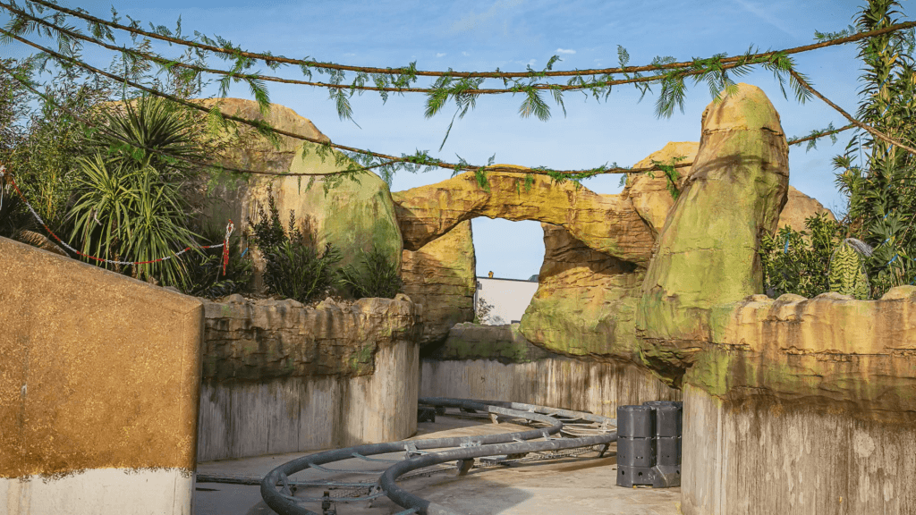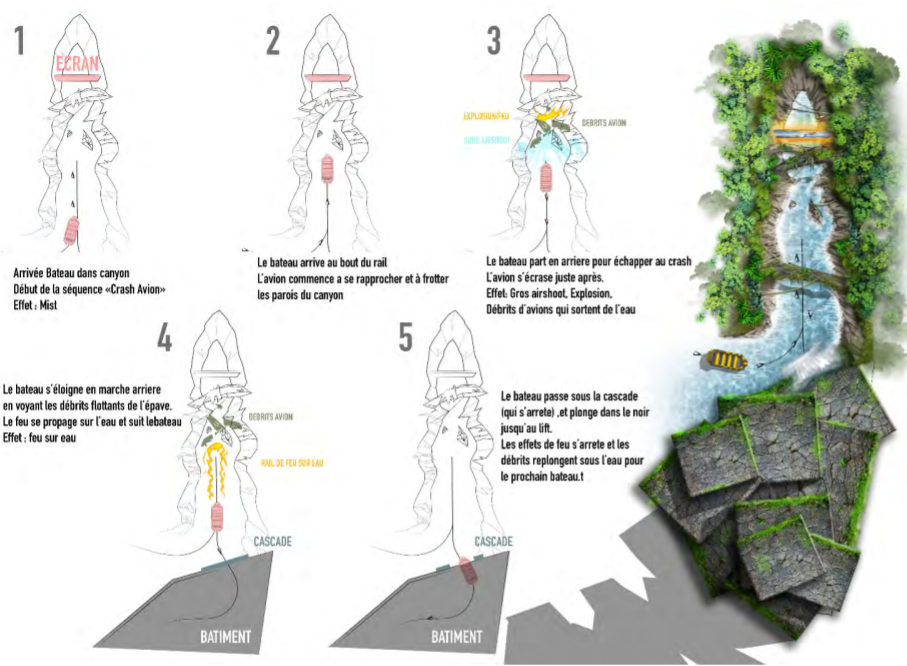 Le parcours, d’une longueur de 457 mètres, est immersif avec notamment une étendue d’eau, des rochers, une plage, une jungle, des rapides et un crash d’avion.