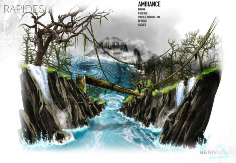 Cette expédition en bateau (sorte d’aéroglisseurs à 10 places) vous emmène à la découverte des mystères de l’île Bermuda, sur un circuit ponctué d’effets spéciaux et de projection d’images pour la partie intérieur (décors réels et virtuels), et de chutes d’eau (la plus haute de 16 mètres) et d’accélérations pour celle en extérieur. Il y a notamment des marches arrière, des cascades, des vortex, des explosions, des effets spéciaux et des écrans. Les bateaux atteignent 60 km/h lors de la chute finale.