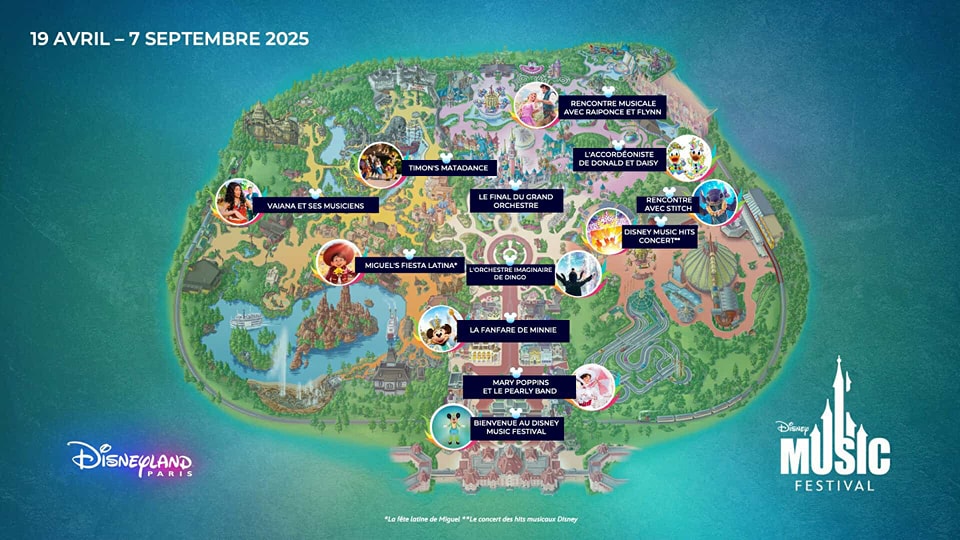 Après avoir mis les couleurs à l’honneur dans la saison La Symphonie des Couleurs, Disneyland Paris a célèbré la musique ! Du 19 Avril au 7 Septembre 2025, le Disneyland Park a en effet accueilli le Disney Music Festival lors duquel les Personnages Disney et Pixar furent les vedettes de rencontres, de concerts live et de spectacles qui ont fait la part belle aux tubes Disney ! Redécouvrez le programme dans la suite de cet article.