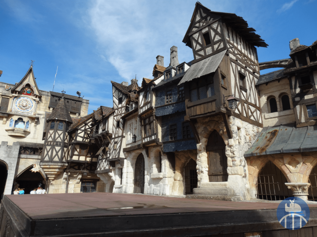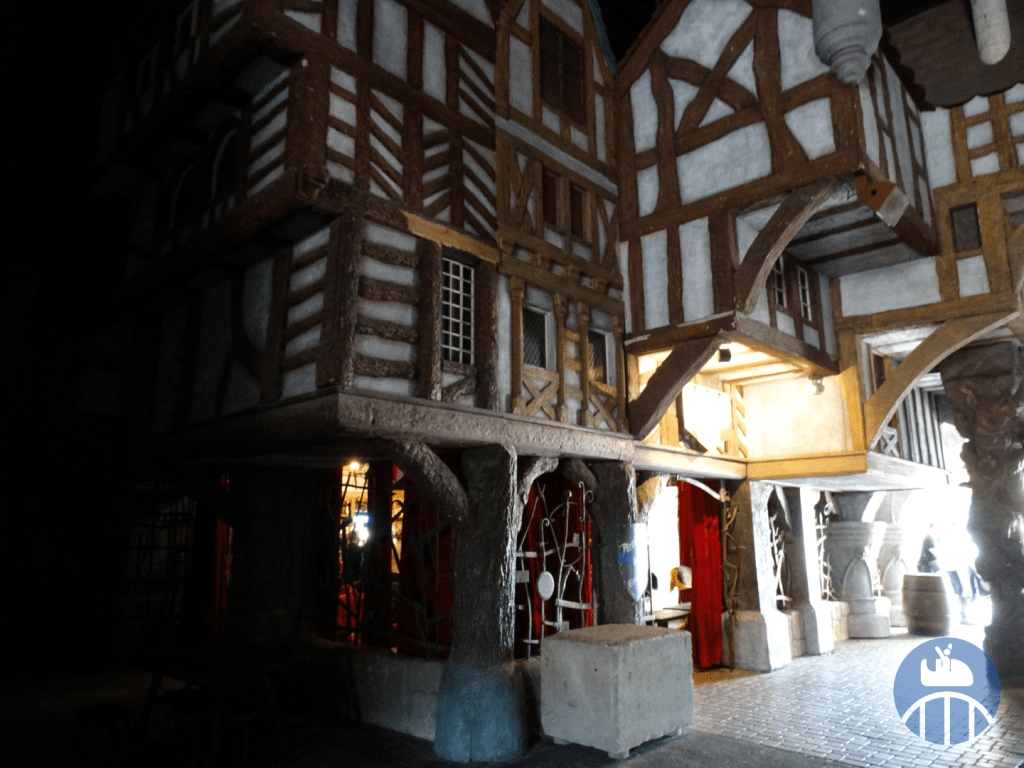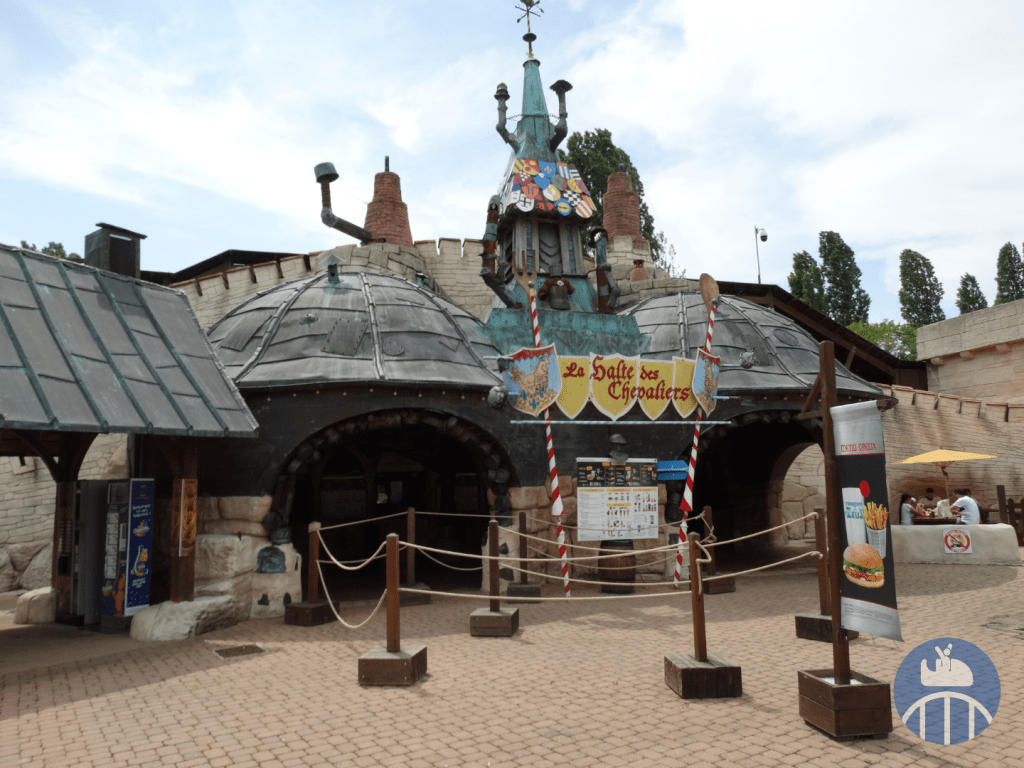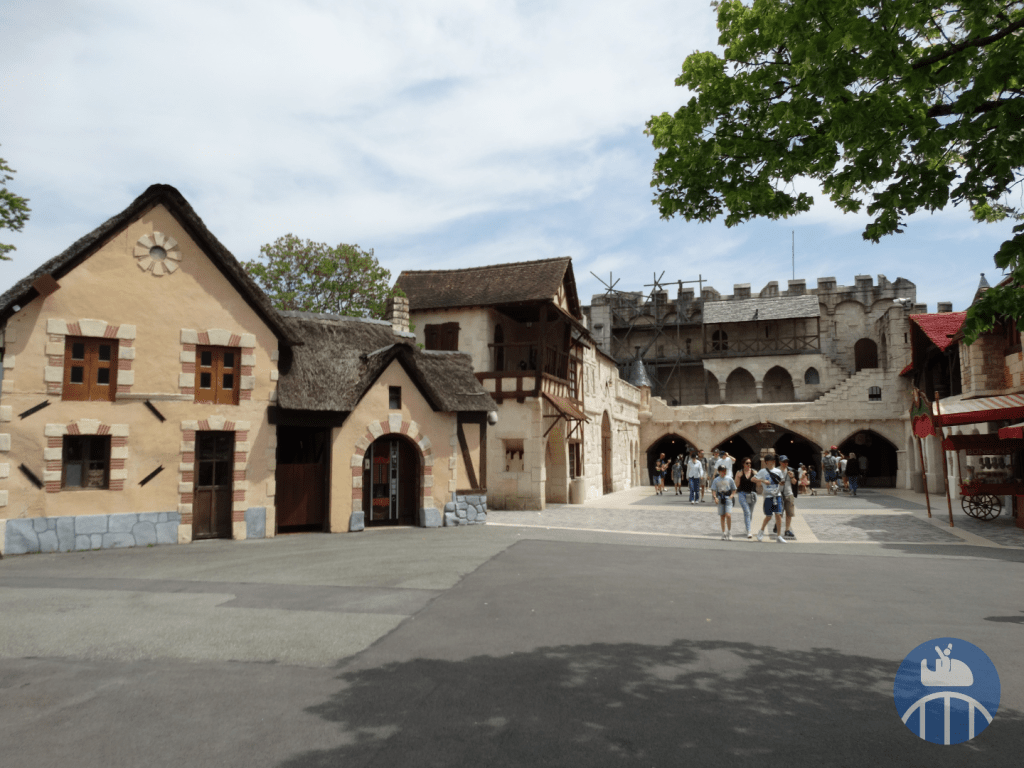 Le voyage débutait aux abords du lac (entre la Forêt d’Idéfix et la zone Vikings) par le Moyen-Âge, avec, pour la partie en extérieur : le Mini Carrousel, les tours amoureuses, le restaurant La Halte des Chevaliers, deux petits points de vente snack et le train fantôme Transdemonium. La partie en intérieur qui suit présentait des vrais métiers de l’époque féodale (à l’ouverture du parc). En 2025, on y trouvait Le Café O’dal et la boutique souvenirs Au Chaperon d’Or.