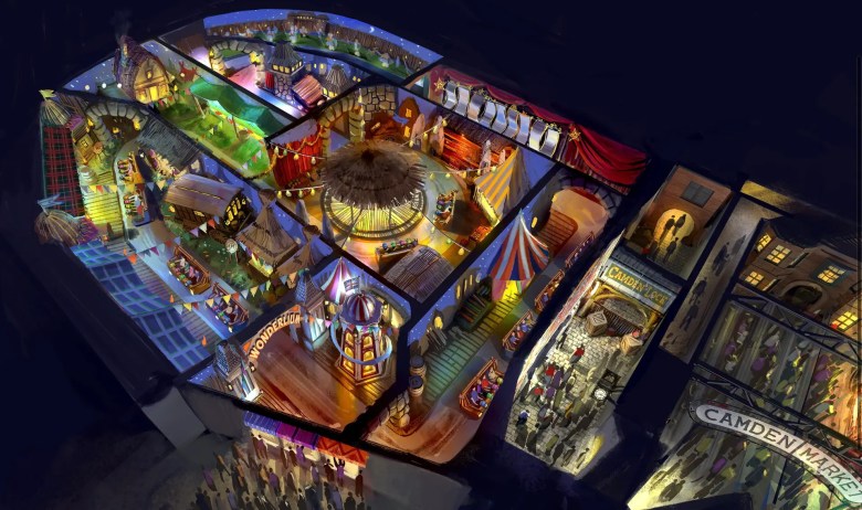 Camden abritera un passage faisant référence aux marchés aux puces de la capitale, le Dark Ride Interactif ainsi que la montagne russe (l’entrée se fera via la place Piccadilly Circus).