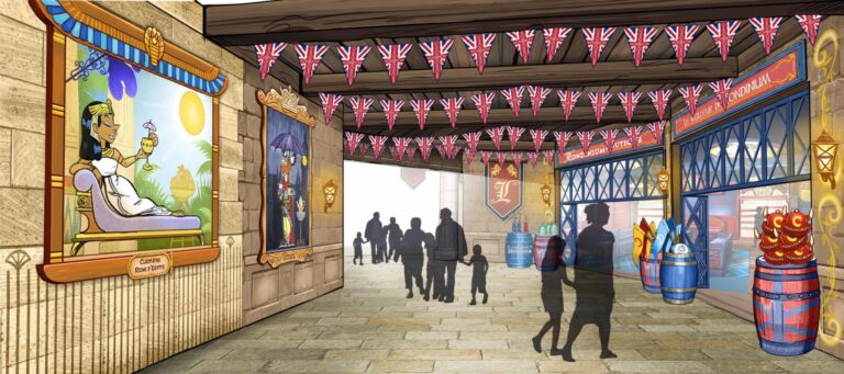 La file d’attente débutera dans Piccadilly Circus et amènera les visiteurs dans un pub anglais où se déroulera un preshow pour expliquer l’histoire de l’attraction.
