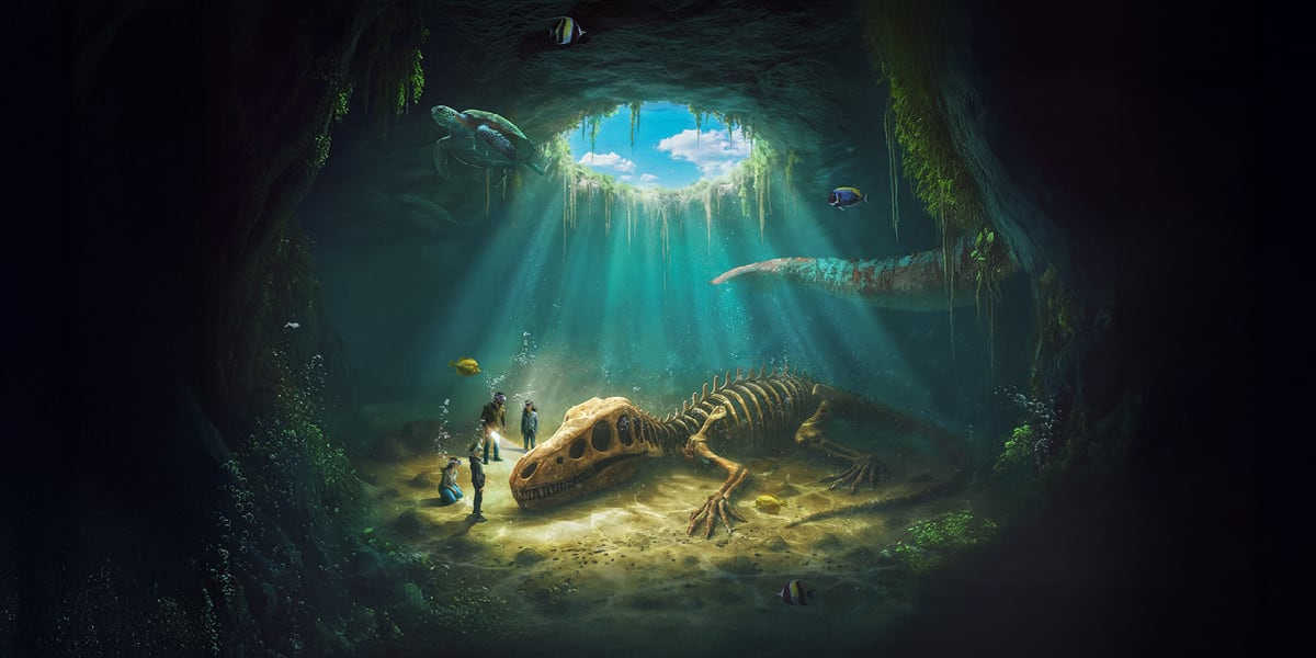 Cette expérience de Réalité Mixte (réelle et virtuelle) transporte les visiteurs (6 par groupe maximum) dans les cénotes du Yucatan au Mexique (sorte de gouffres remplis d’eau). Ils ont pour but de trouver des fossiles de dinosaures aquatiques et, grâce à la réalité virtuelle, ces mastodontes vont prendre vie sous leurs yeux. L’expérience dure entre 12 et 15 minutes.