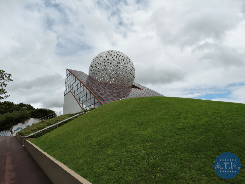 Fun Fact : La boule originelle qui était présente sur la structure a été démontée en 2012 pour cause de corrosion sur la structure métallique (elle aura tenu 25 ans !). Elle sera alors reconstruite à l’identique mais plus légère (avec des changements de matériaux et une structure dentelée) et repositionnée sur le bâtiment en 2014.