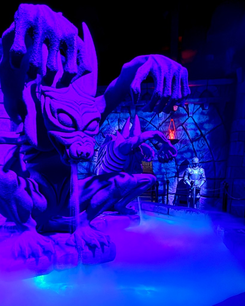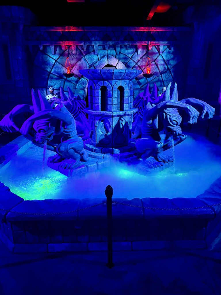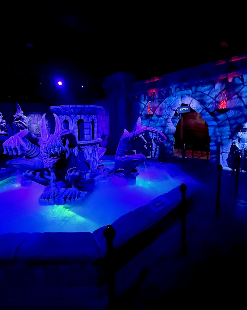 Sa thématisation reprend les éléments du premier volet des films de Scooby-Doo (2002), où les 4 détectives et leur chien se retrouvent à mener une enquête sur Spooky Island, un Resort sur le thème de l’horreur situé sur une île tropicale. L’entrée de l’attraction s’effectue d’ailleurs par la façade du château de Spooky Island.