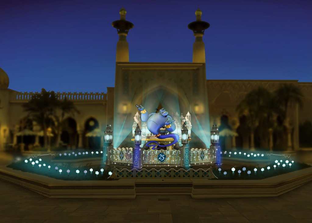 À la nuit tombée, le parc sera illuminé, plus particulièrement le Mediterranean Harbor, avec des projections sur l’hôtel MiraCosta, ainsi que la cour de la zone Arabian Coast.