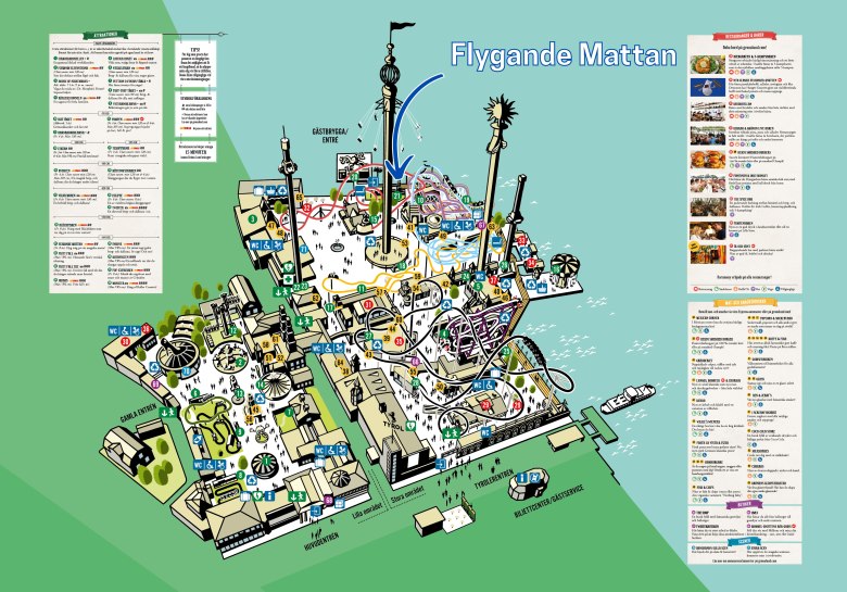 Spindeln sera située à la place de l’attraction Flygande Mattan, un Tapis Volant ouvert en 1983 le long de la jetée de Stora Omradet entre les montagnes russes Kvasten, Bla Taget et Twister.