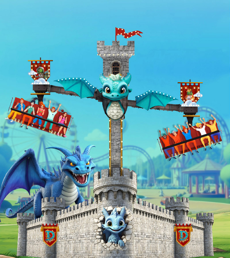 La première nouveauté, dénommée Draknor, sera une attraction de type Luna du constructeur Gosetto. Cette tour de chute de 8 mètres de haut et pouvant embarquer jusqu’à 12 personnes vient d’arriver dans le catalogue du constructeur italien et a pour particularité d’avoir des nacelles inclinables et rotatives à 360°. Cette nouvelle attraction rejoindra la zone médiévale du parc.