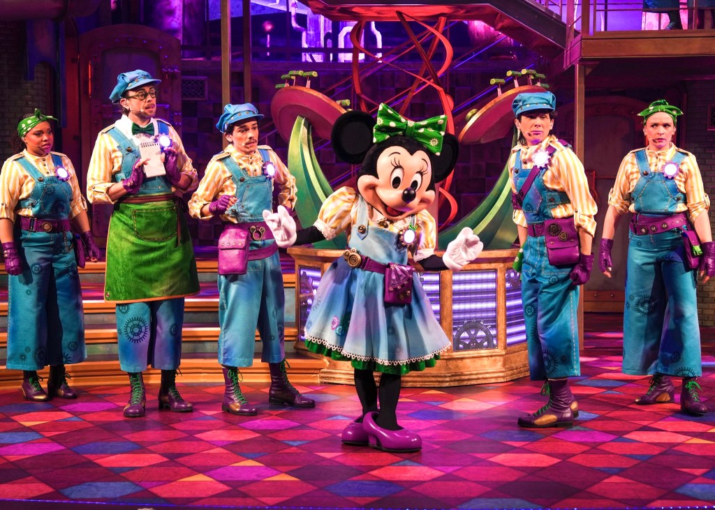 Comme le nom du spectacle l’indique, Minnie Mouse est à l’honneur dans le rôle de la directrice de la fabrique, à la tête d’une équipe de choc composée de Tic et Tac, le duo comique, Donald Duck, qui gère tous les détails techniques, et Daisy Duck, qui insuffle son énergie débordante pour maintenir la bonne humeur générale. Ajoutons que de nouveaux costumes habilleront les personnages et les six chanteurs.