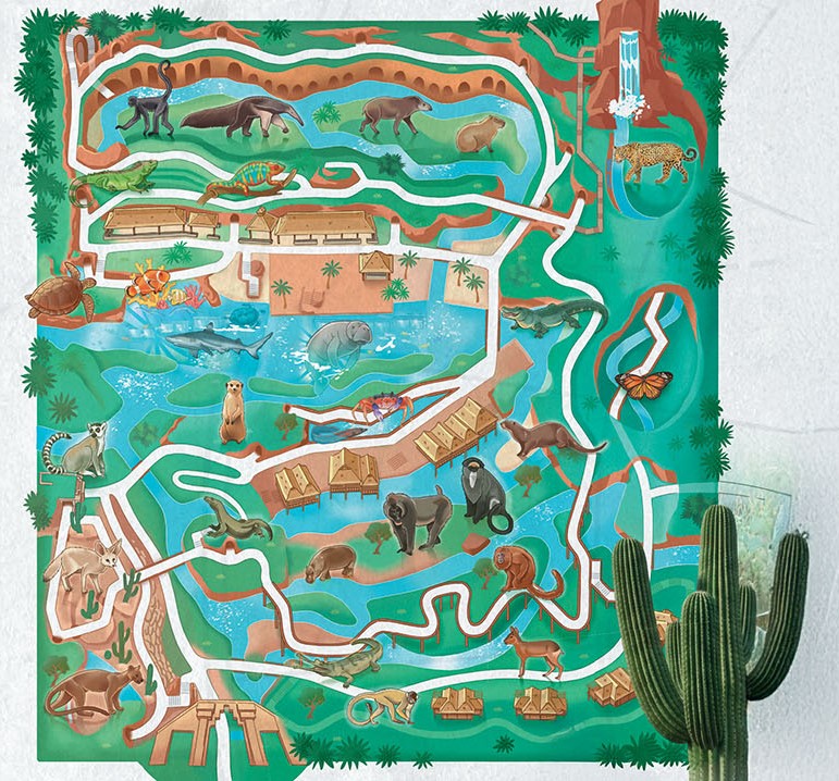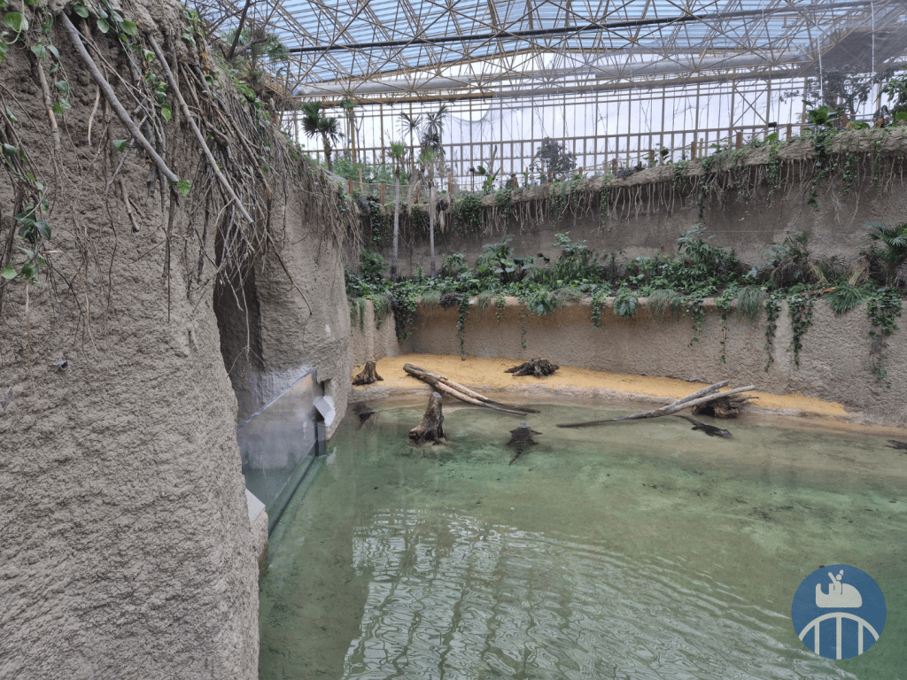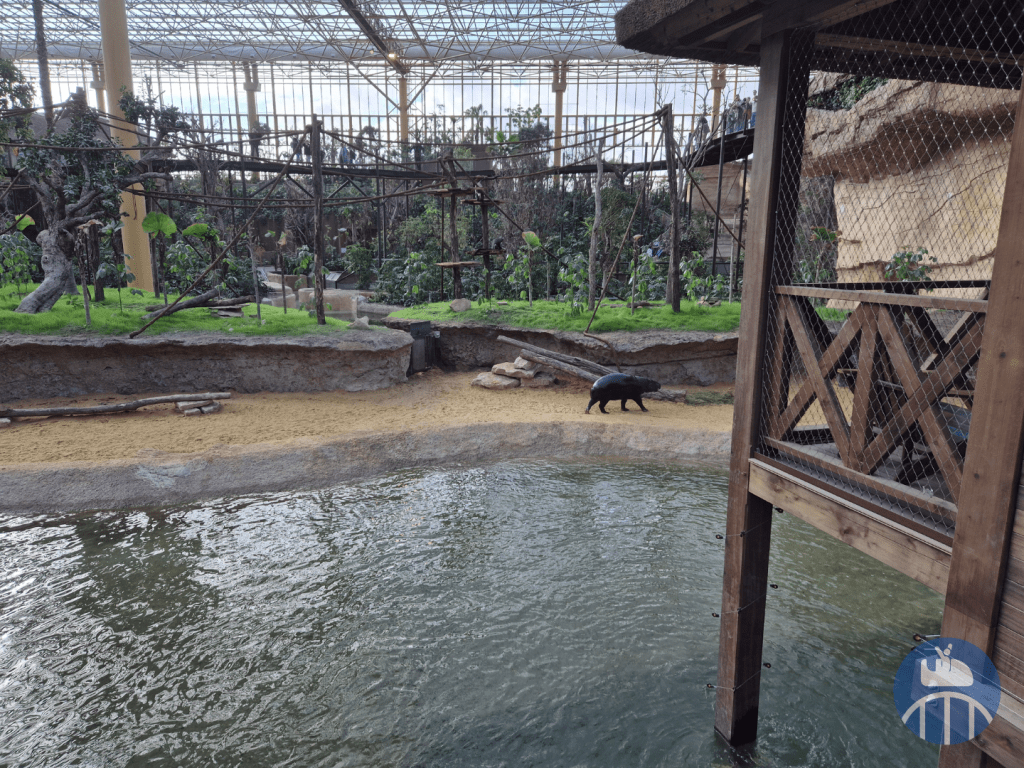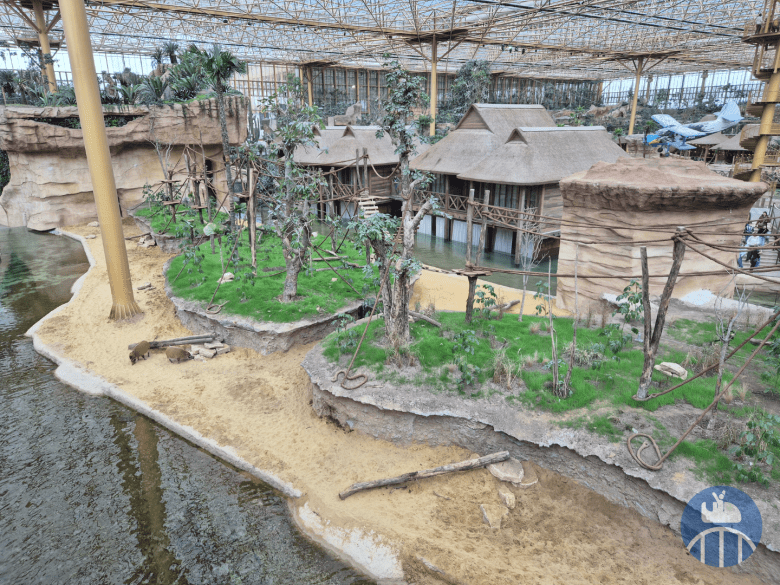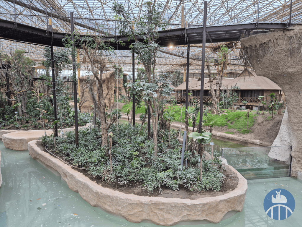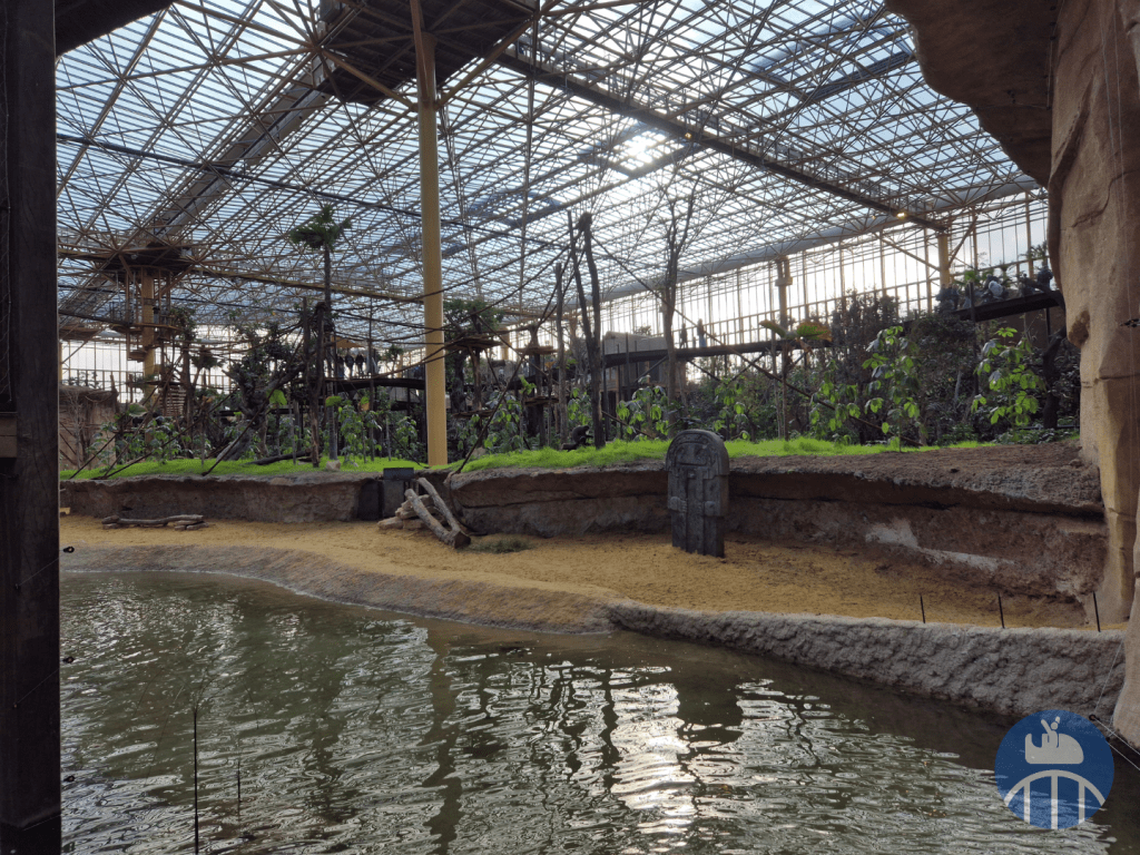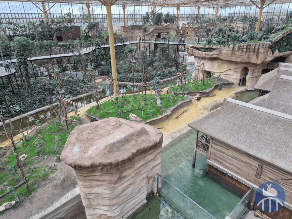 Dans une jungle immense (qui évoluera au fil des années), des ponts suspendus mènent les visiteurs au plus près de la canopée à la rencontre de gavials du Gange, saïmiris, pudus, antilopes dik-dik, pacas, céphalophes du Natal, drills, cercopithèques de Brazza et hippopotames nains.