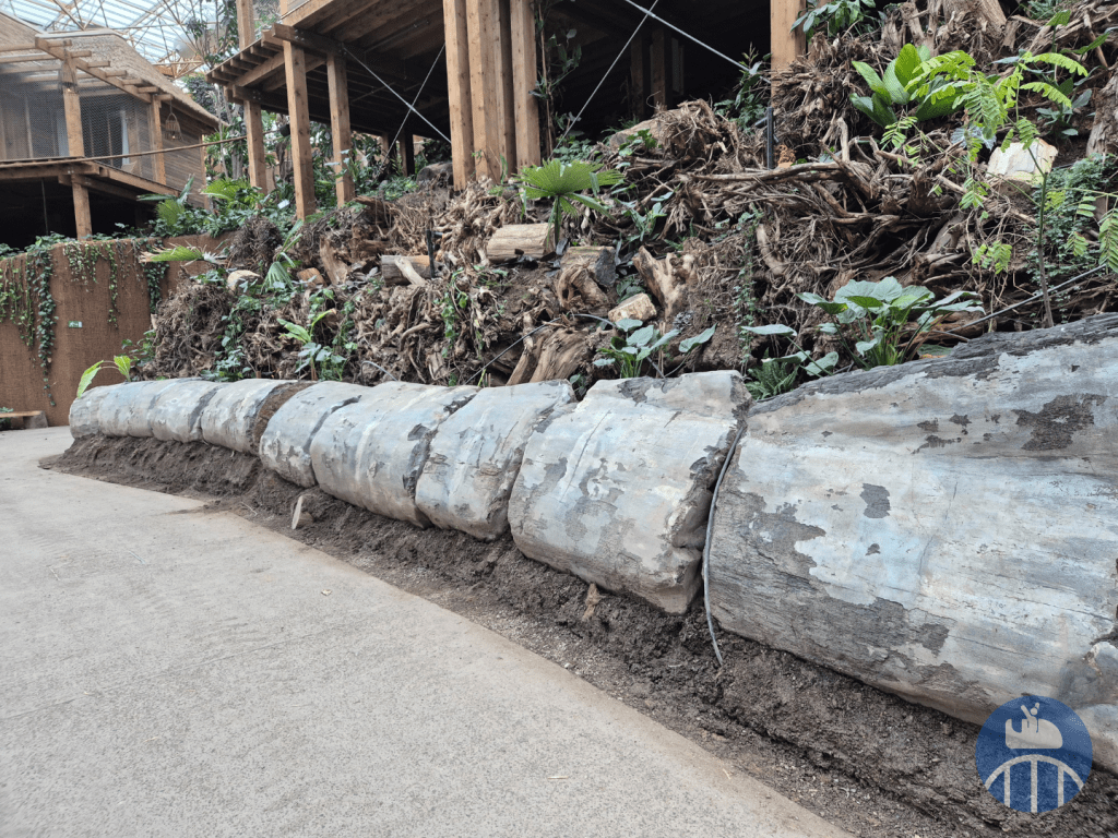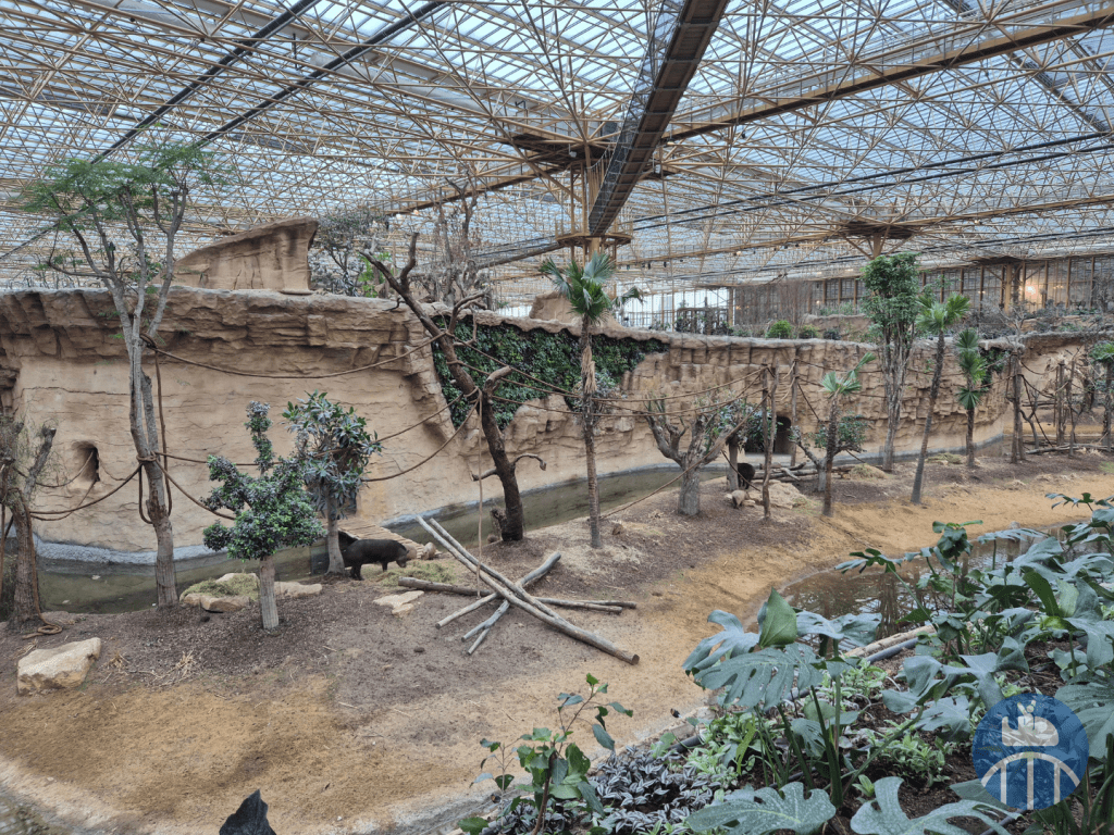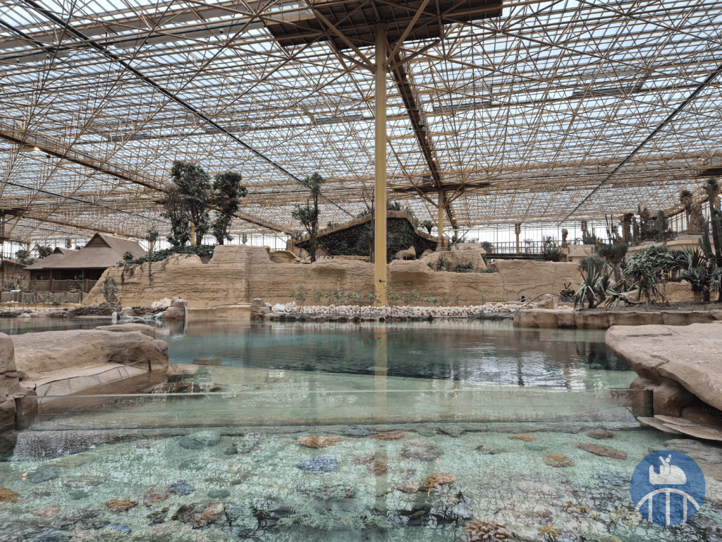 Mais ce n’est pas tout ! 25 colonnes ignifugées, un système de ventilation automatique capable d’évacuer la fumée en quelques secondes, des sprinklers et canons à eau intelligents, des matériaux acoustiques qui absorbent le son pour préserver la tranquillité des visiteurs et des animaux… tout a été pensé dans les moindres détails ! Les 5000 m2 d’espaces techniques gèrent quant à eux la purification de l’air, la filtration de l’eau, le chauffage, le refroidissement et la régénération des bassins tropicaux.