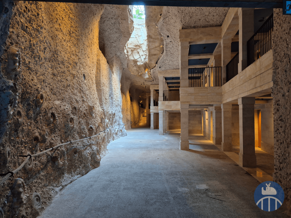 Envie de se poser plus longuement ? The Abyss est un restaurant bistronomique exceptionnel… sous l’eau ! Une première en Europe ! Vous y découvrirez entre autres quatre plaques monumentales, issues de la formation de Santana au Brésil, révèlant une ichtyofaune fossilisée vieille de près de 125 millions d’années. Un fossile d’exception est en outre exposé dans cette zone : un Xiphactinus audax, un poisson carnassier géant du Crétacé, long de 4,20 mètres, dans une plaque incrustée d’ammonites. Découvert dans les terres du Kansas, il vécut il y a plus de 80 millions d’années, quand une mer intérieure recouvrait une grande partie de l’Amérique du Nord.