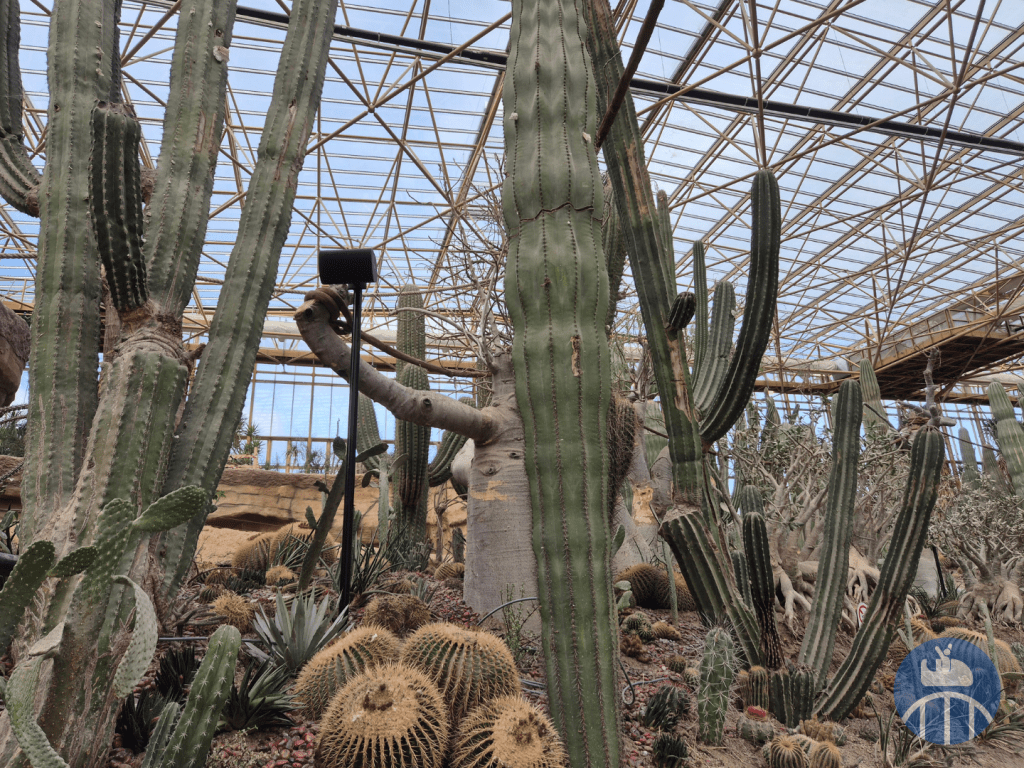 Du point de vue botanique, vous pourrez y observer des cactus ainsi que des euphorbes et même des morceaux de troncs de cycas fossilisés, datant de l’ère Paléozoïque, bien avant l’apparition des dinosaures ! Autres essences exceptionnelles s’épanouissant dans cet espace, deux Ficus religiosa, descendants authentiques de l’arbre sous lequel Siddhartha Gautama atteignit l’Éveil pour devenir Bouddha, il y a plus de deux mille ans, à Bodh Gaya (Inde).