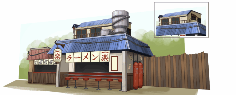 Deux points horeca et une boutique complèteront en outre la zone. Ichiraku Ramen proposera les ramens préférés de Naruto, mais aussi des yakitoris, dorayakis et mochis.