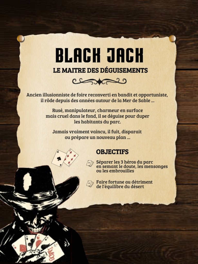 Les trois spectacles entièrement renouvelés seront articulés autour de quatre figures légendaires, incontournables de La Mer de Sable : Willy West, cowboy au grand coeur, Petite Plume, gardienne des esprits et des traditions, Lilly Bell, cavalière et tireuse redoutable, et Black Jack, ancien illusionniste devenu bandit.