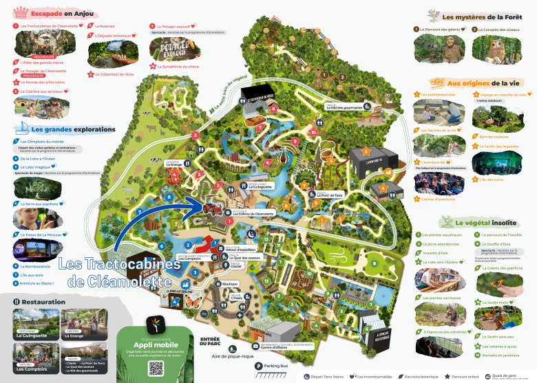 L’attraction Les Tractocabines de Cléamolette se situera à la place du potager, de la Place du Marché (lieu d’animations thématiques) de la zone Escapade en Anjou et de l’ancien Retour d’Expédition de la zone Les Grandes Explorations (qui était la fin du parcours). Le Potager de Cléamolette se situera lui juste à côté, entre les Tractocabines et la crêperie La Grange.